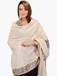 Ivory Pure Pashmina Shawl from Kashmir with Sozni-Embroidery by Hand