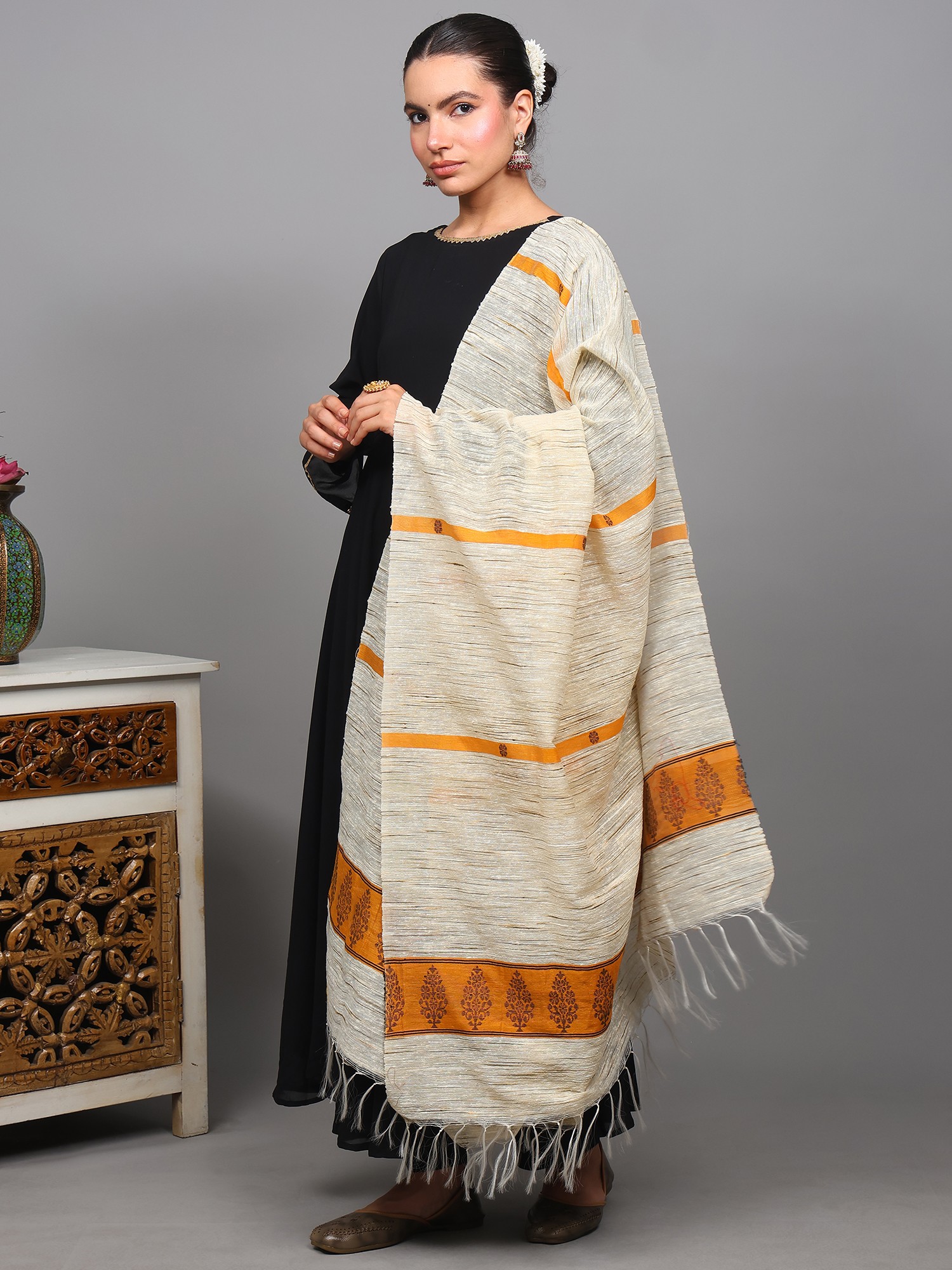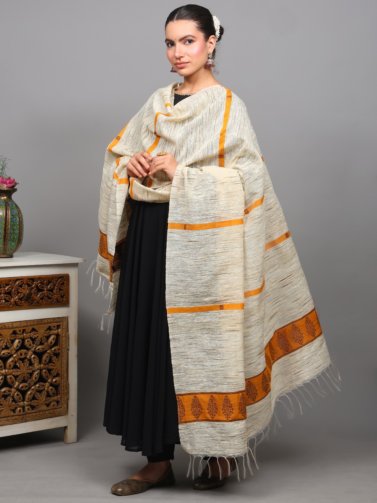 Warm-Sand Khadi Dupatta with Thread Weave Bootis