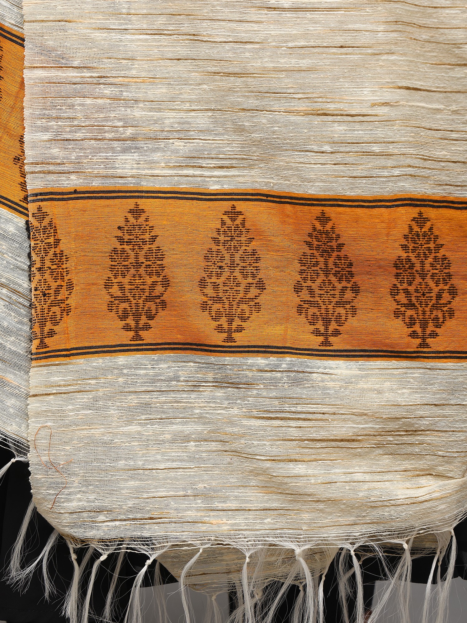 Winter-White Textured Khadi Dupatta with Thread Woven Tree Motifs
