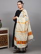 Cannoli-Cream Khadi Dupatta with Thread Weave Folk Tribal Musicians