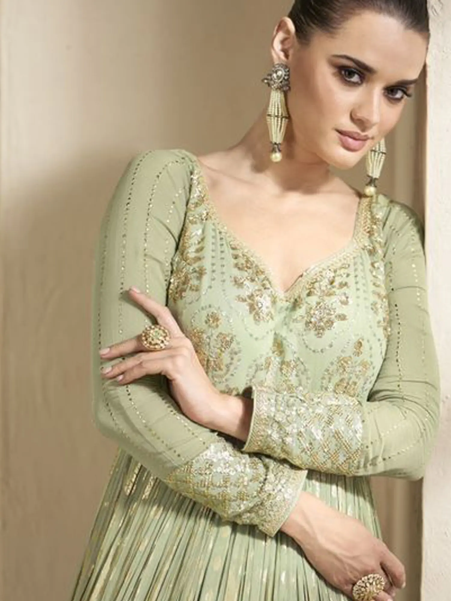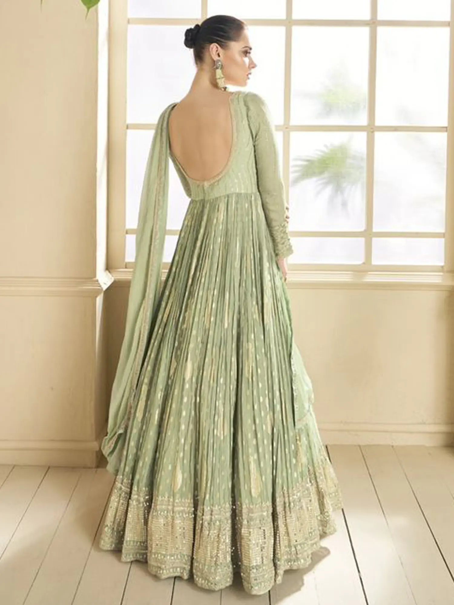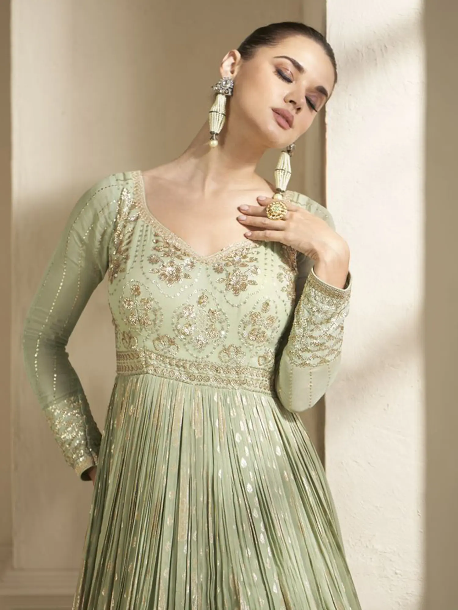 Flowing Anarkali silhouette crafted from luxurious viscose silk georgette.