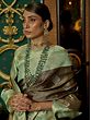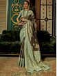 Swedish-Blue Pure Silk Baluchari Saree from Bengal Depicting Mythological Episodes