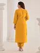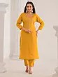 Cotton Lace Work Solid Designer V-Neck Kurta With Matching Bottom And Multicolor Dupatta