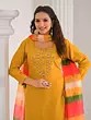 Multicolor Sequence And Embroidery Work V-Neck Attractive Kurta With Bottom And Dupatta