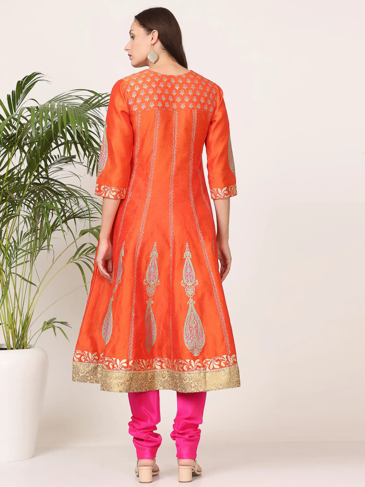 Designer Women Embroidered A Line Silk Kurta Set With Matching Pants For Festive Occasions