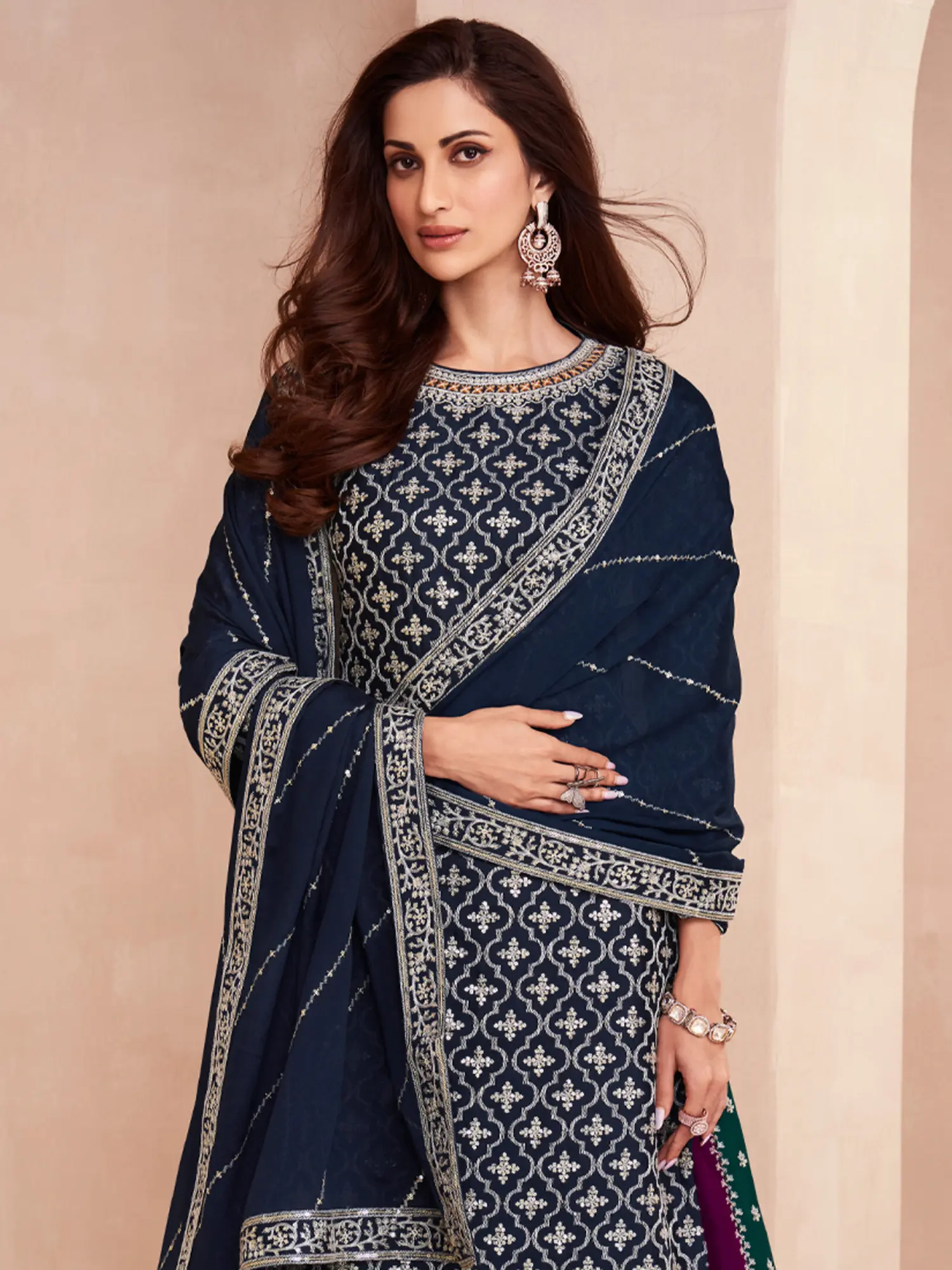 Envision yourself at a lavish wedding reception, a vibrant festive gathering, or a significant family celebration, where heads will turn in admiration. This ensemble is perfectly suited for those moments when you want to express your refined taste and grace. It transitions effortlessly from day to night, ensuring you radiate elegance at every turn.