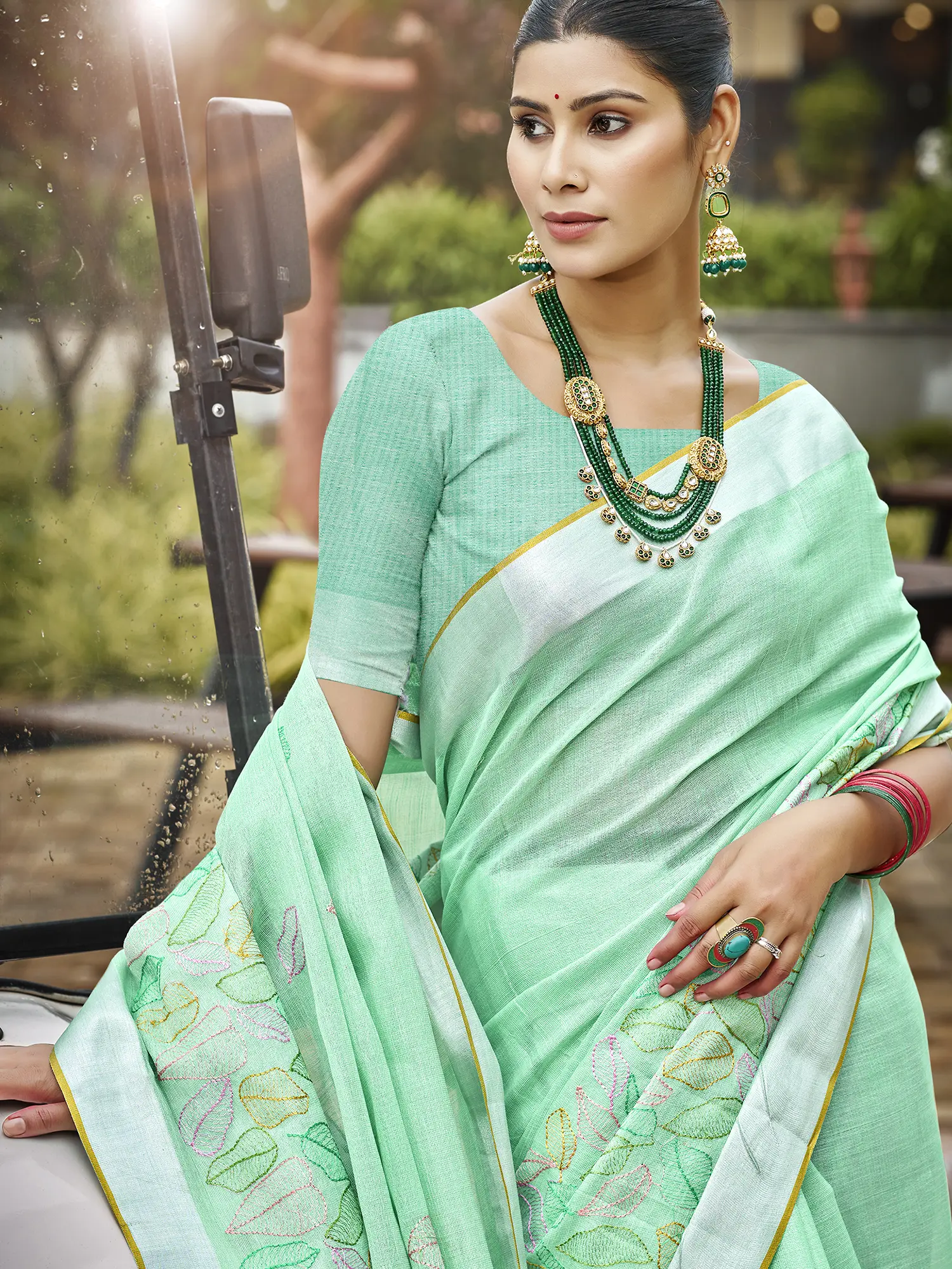 Embrace Effortless Elegance: The Delicate Leaf Motif Linen Saree