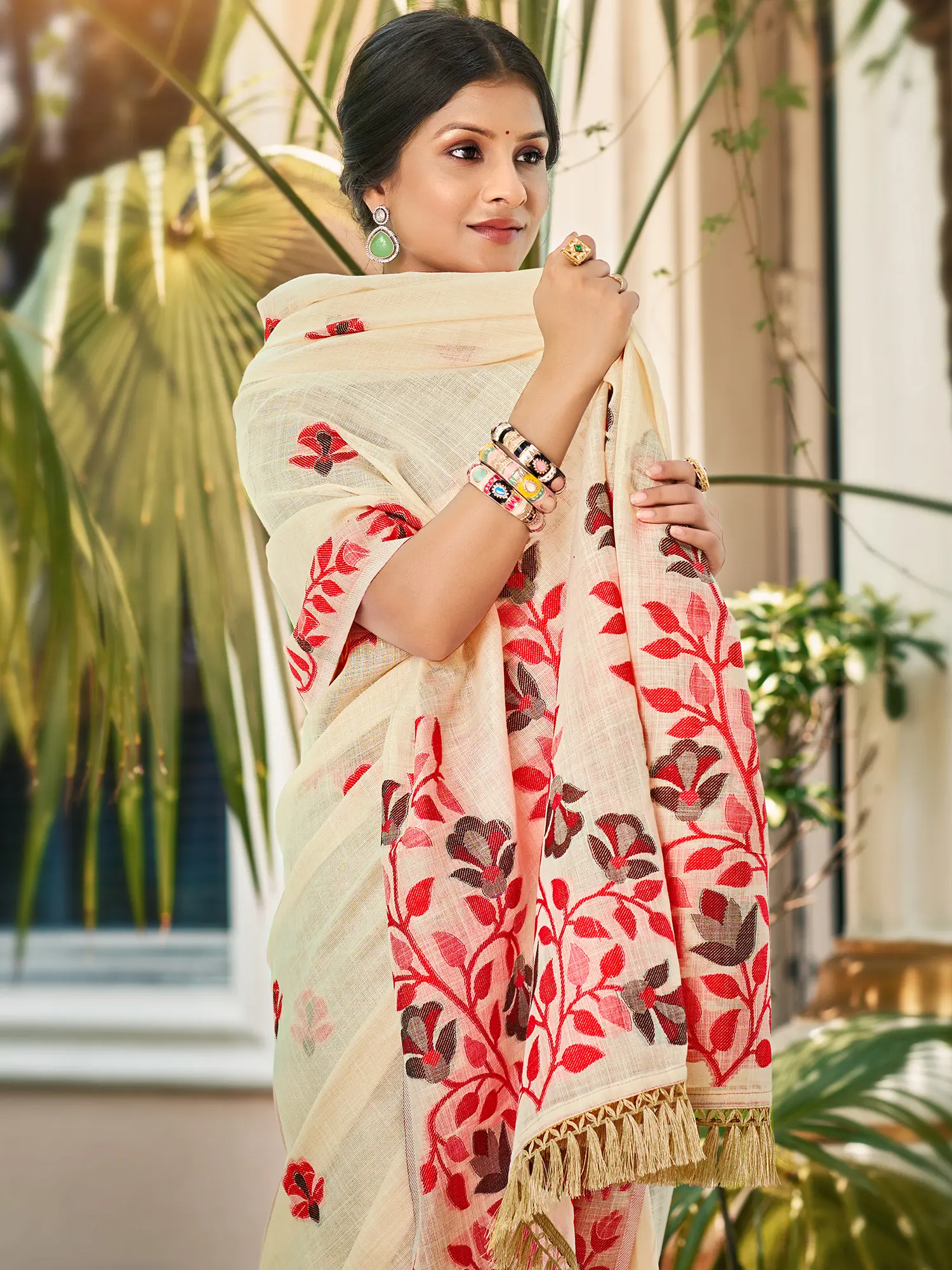 This linen saree is a testament to versatility. Its sophisticated design makes it an ideal choice for festive gatherings, parties, and special celebrations. Whether you're attending a wedding, a cultural event, or a celebratory dinner, this saree will ensure you stand out with its understated grace and intricate detailing. Beyond its celebratory appeal, the natural comfort and elegant drape of linen also make it a perfect option for everyday ethnic wear. It’s a piece that seamlessly transitions from formal occasions to a more relaxed yet refined look.