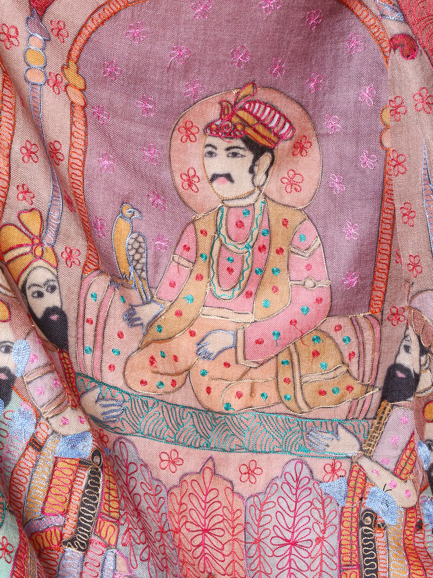 Kalamkari Embroidered Shawl with Mughal Emperor Motifs from Amritsar