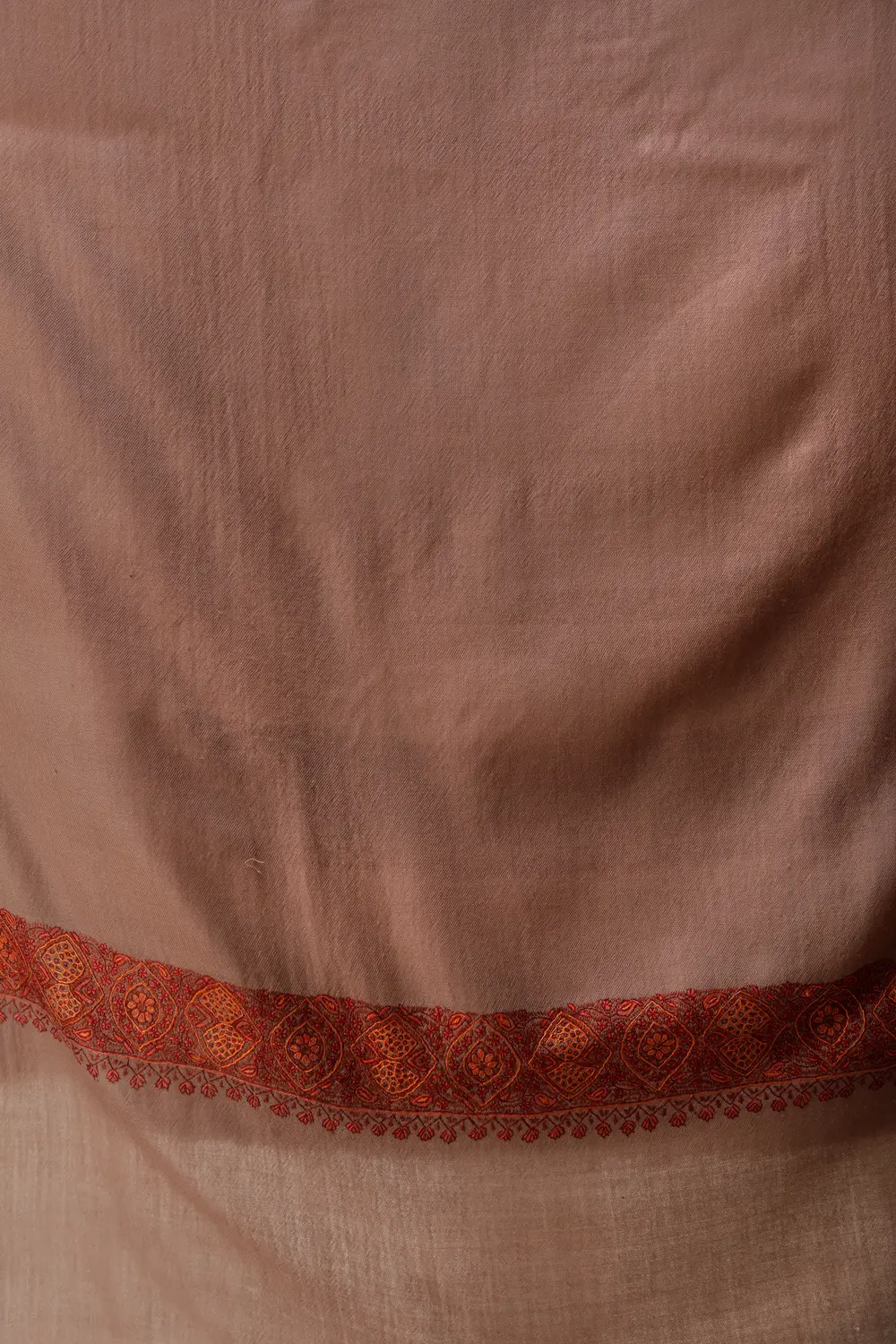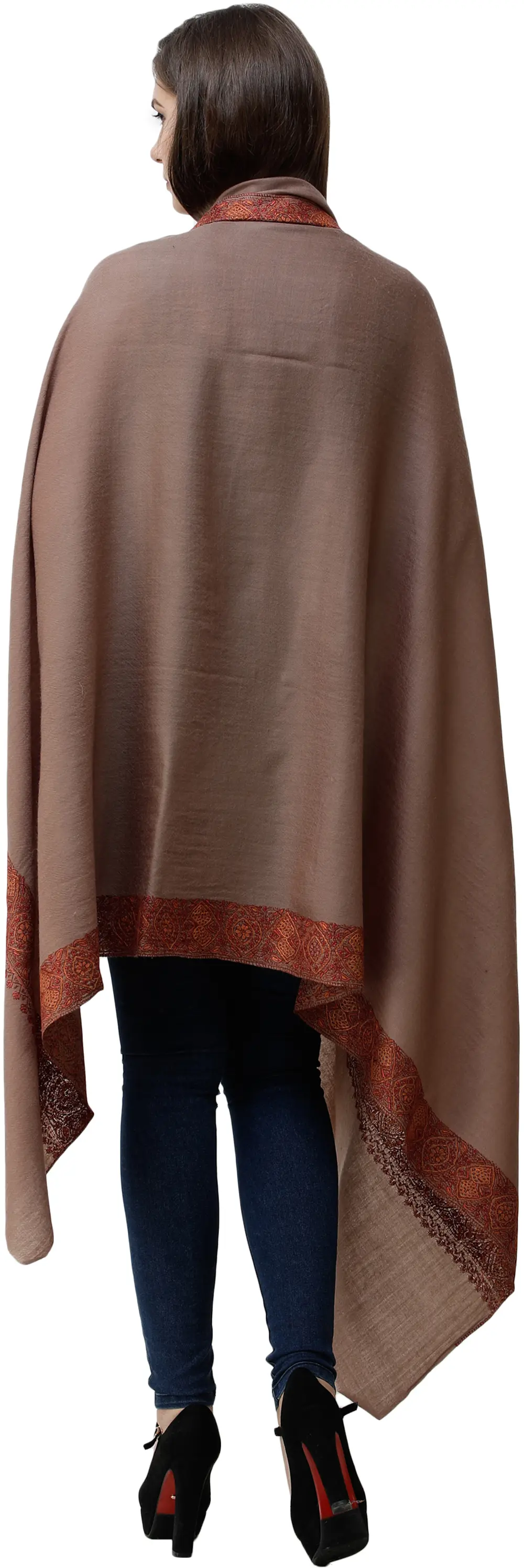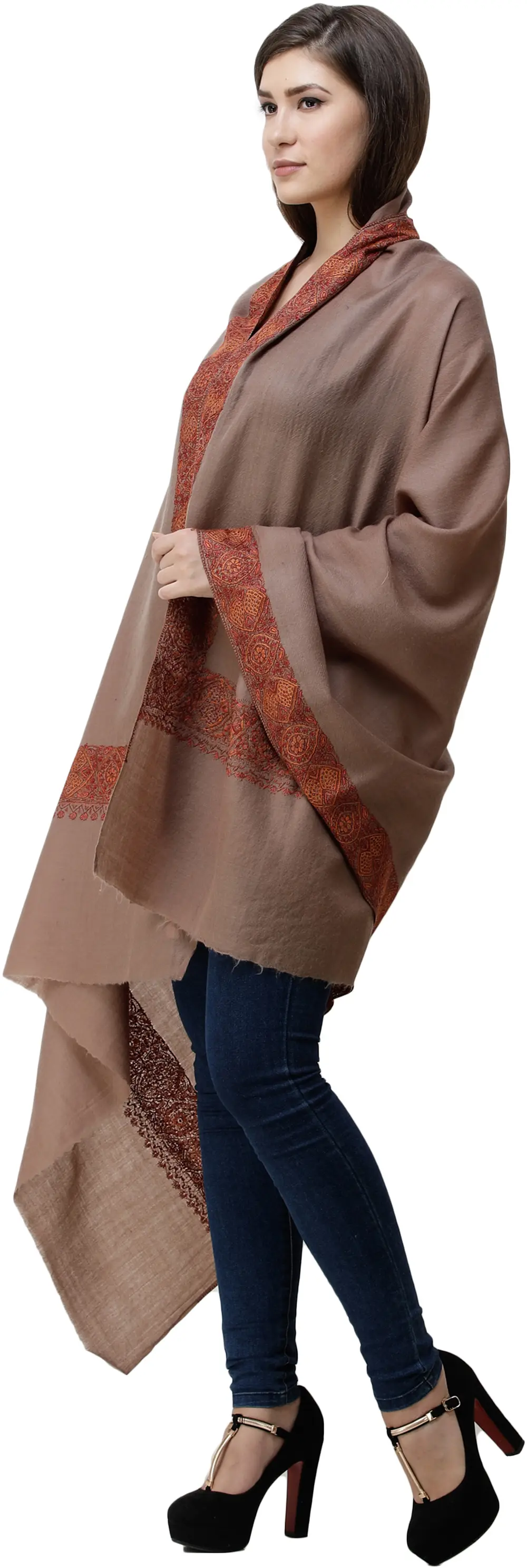 Simply-Taupe Pure Pashmina Shawl from Kashmir with Sozni Hand-Embroidery in Multicolor Thread