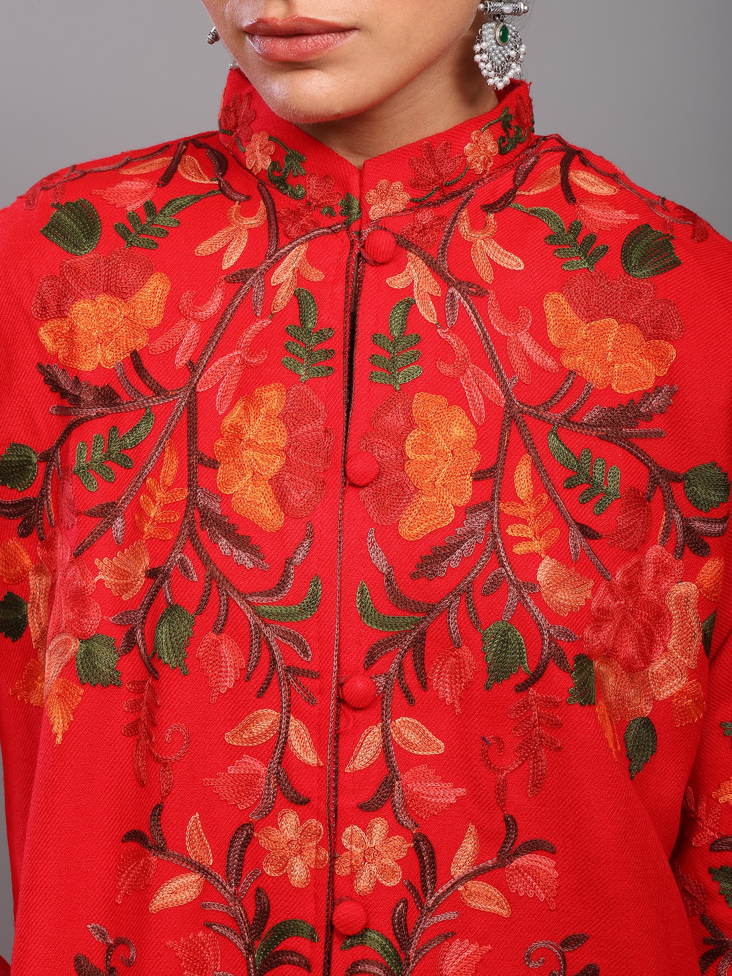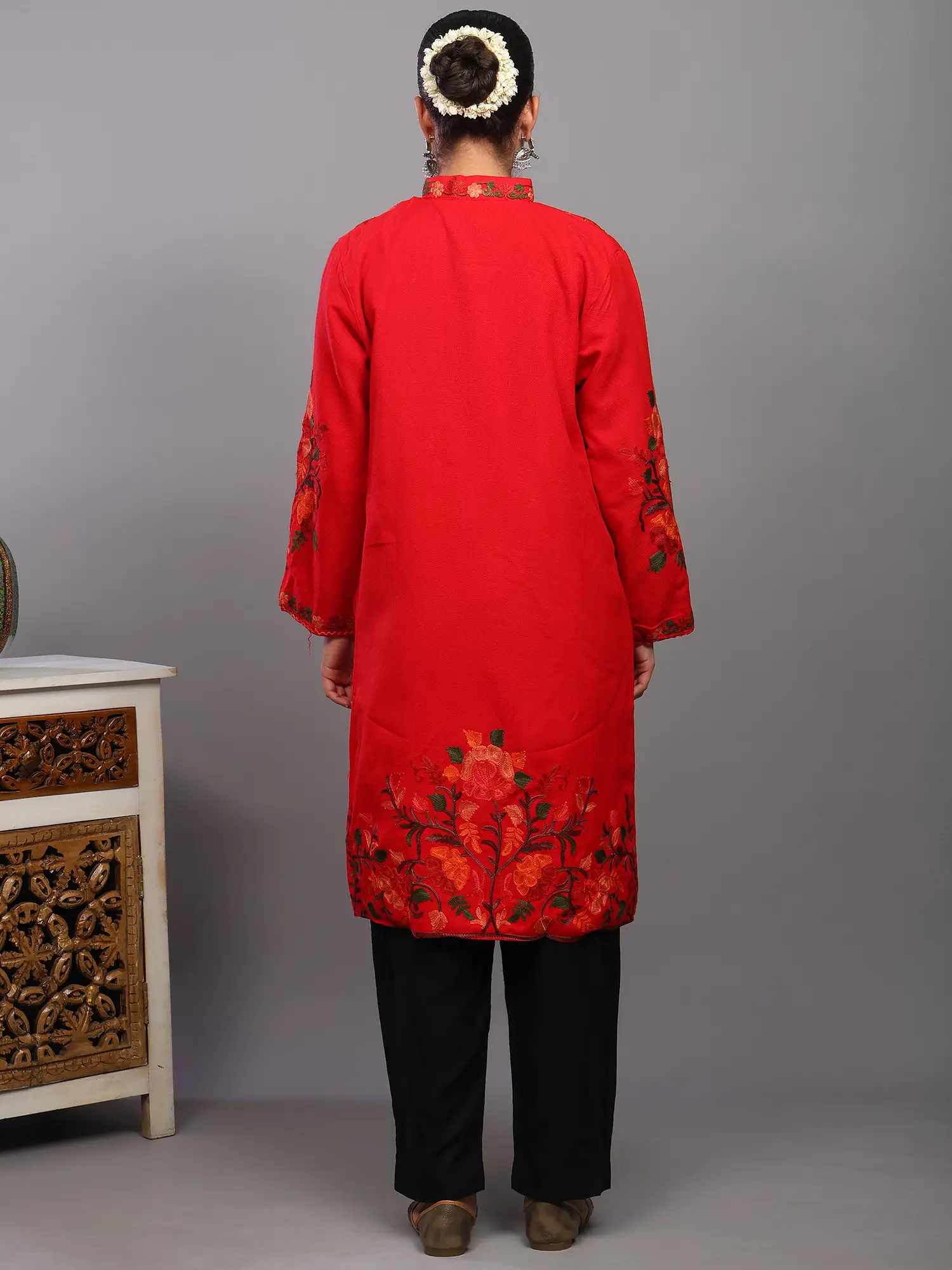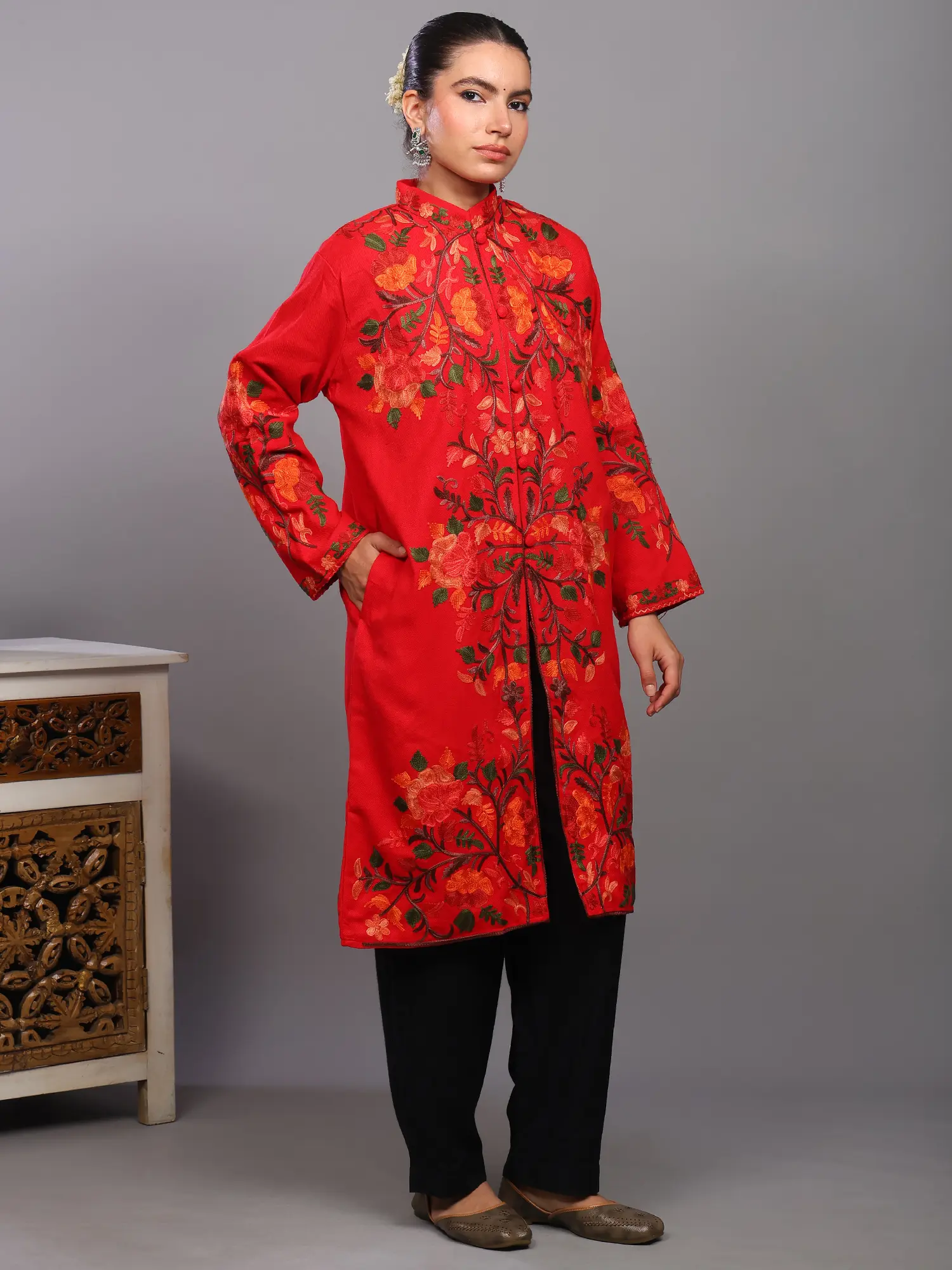This long jacket is crafted with fine Kashmiri wool as a complete solution to all your winter fashion needs.
