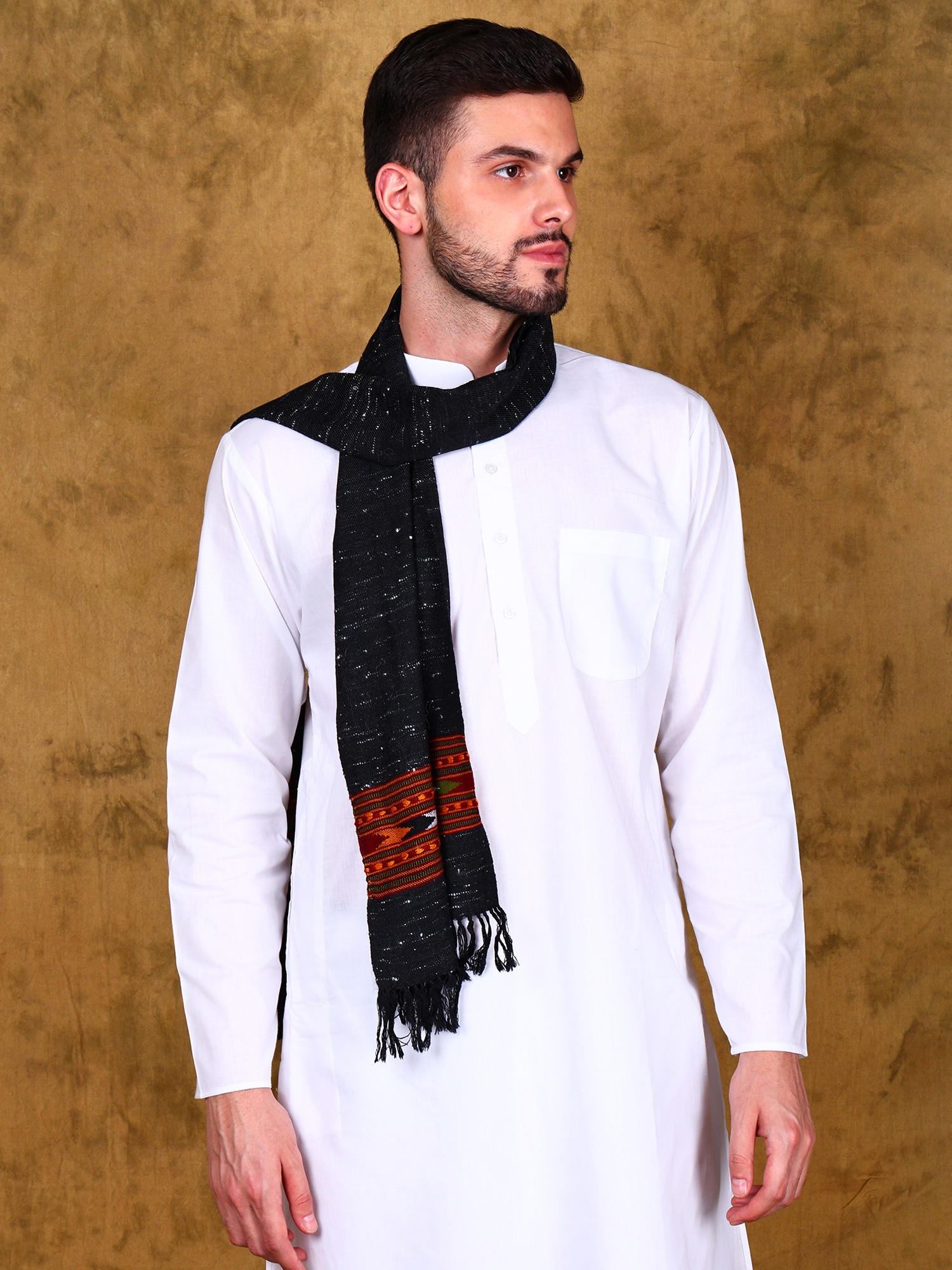 Ivory Pure Pashmina Shawl from Kashmir with Sozni-Embroidery by Hand