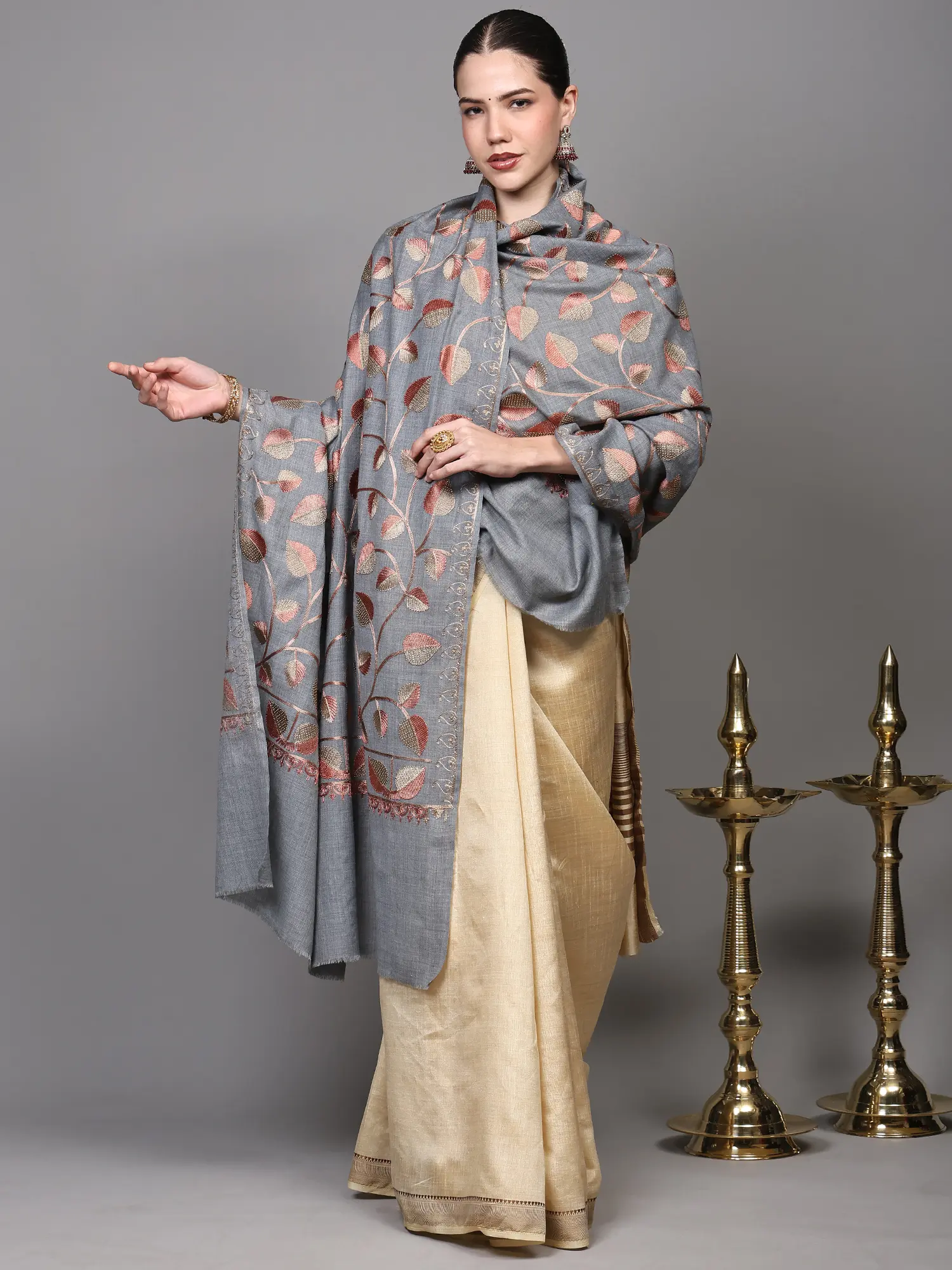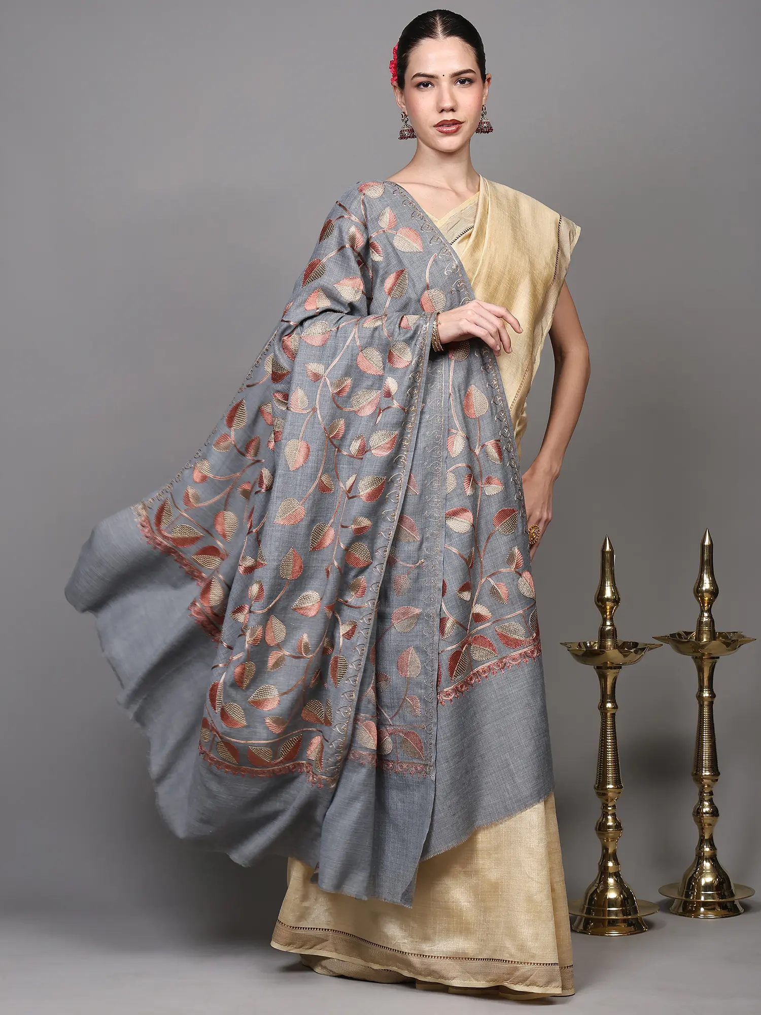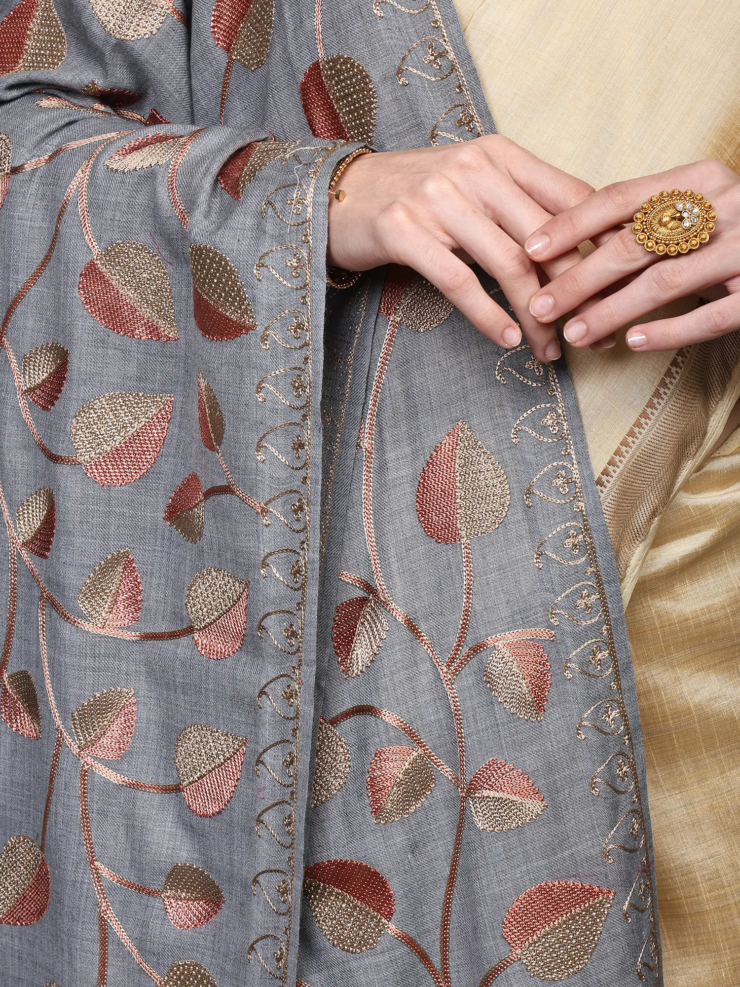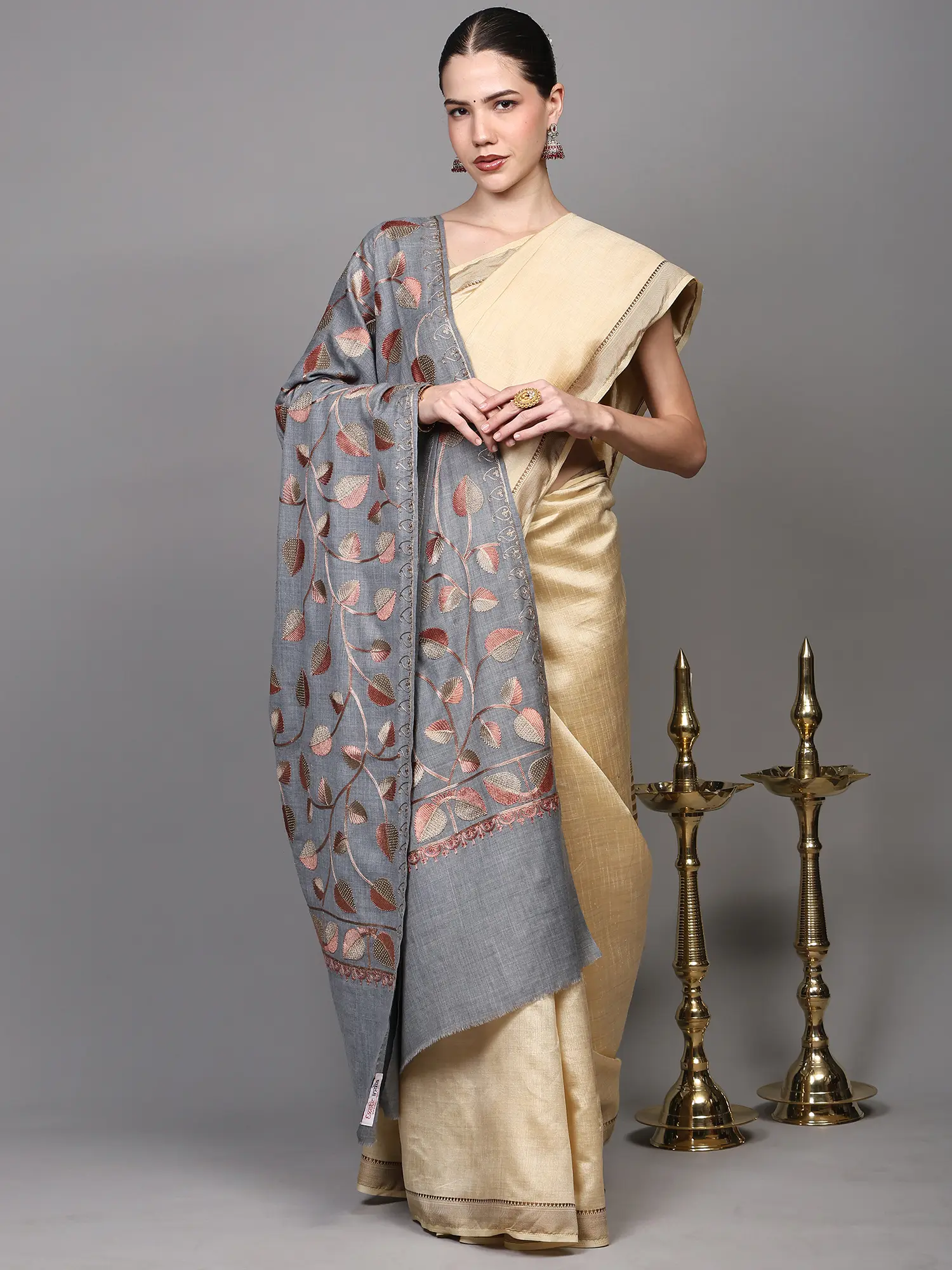 Nomad-Brown Aari Embroidered Shawl