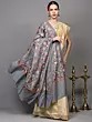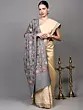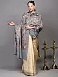 Light-Taupe Kalamkari Embroidered Shawl with Multicolor Paisleys-Flowers Motifs from Amritsar