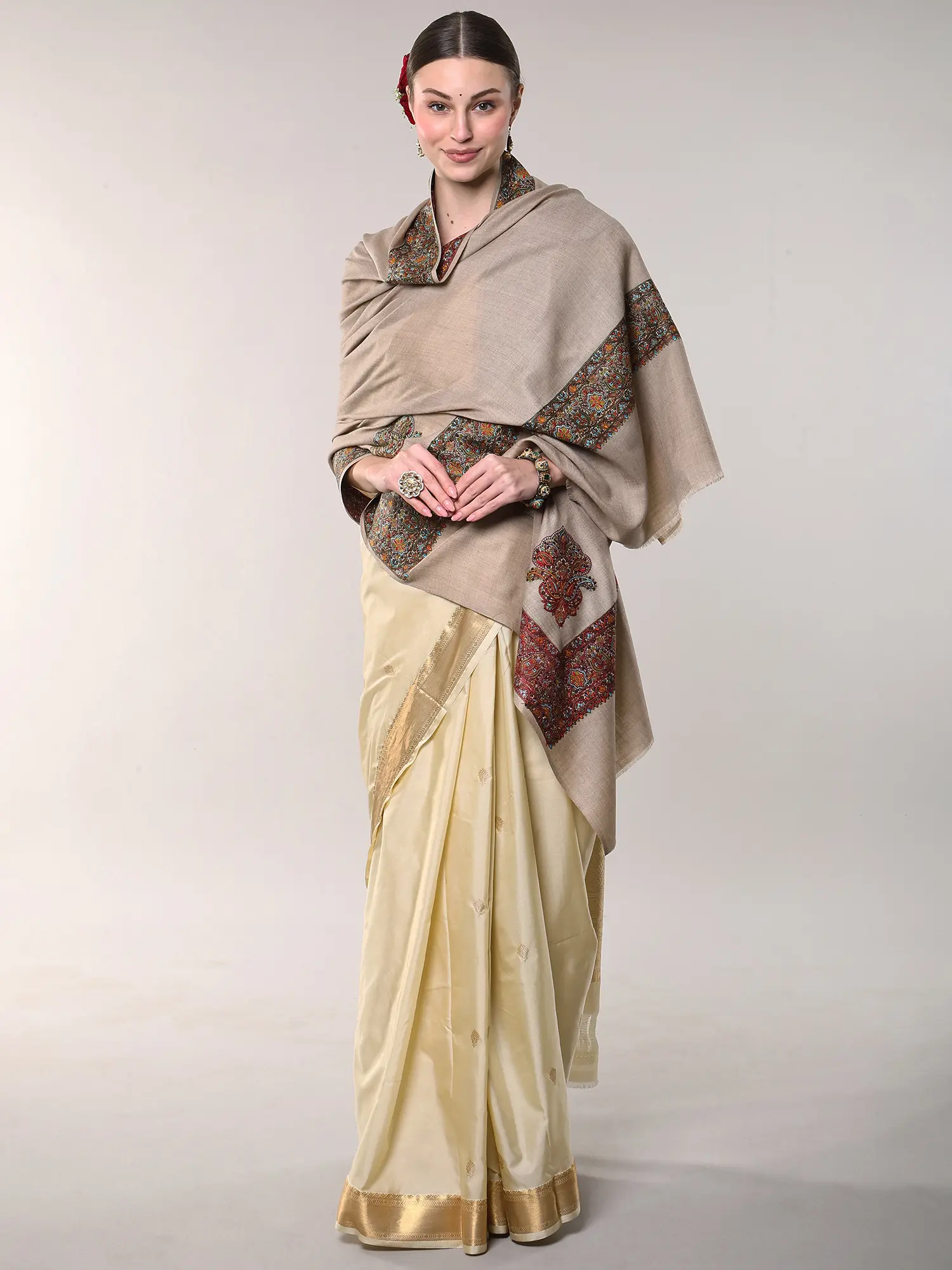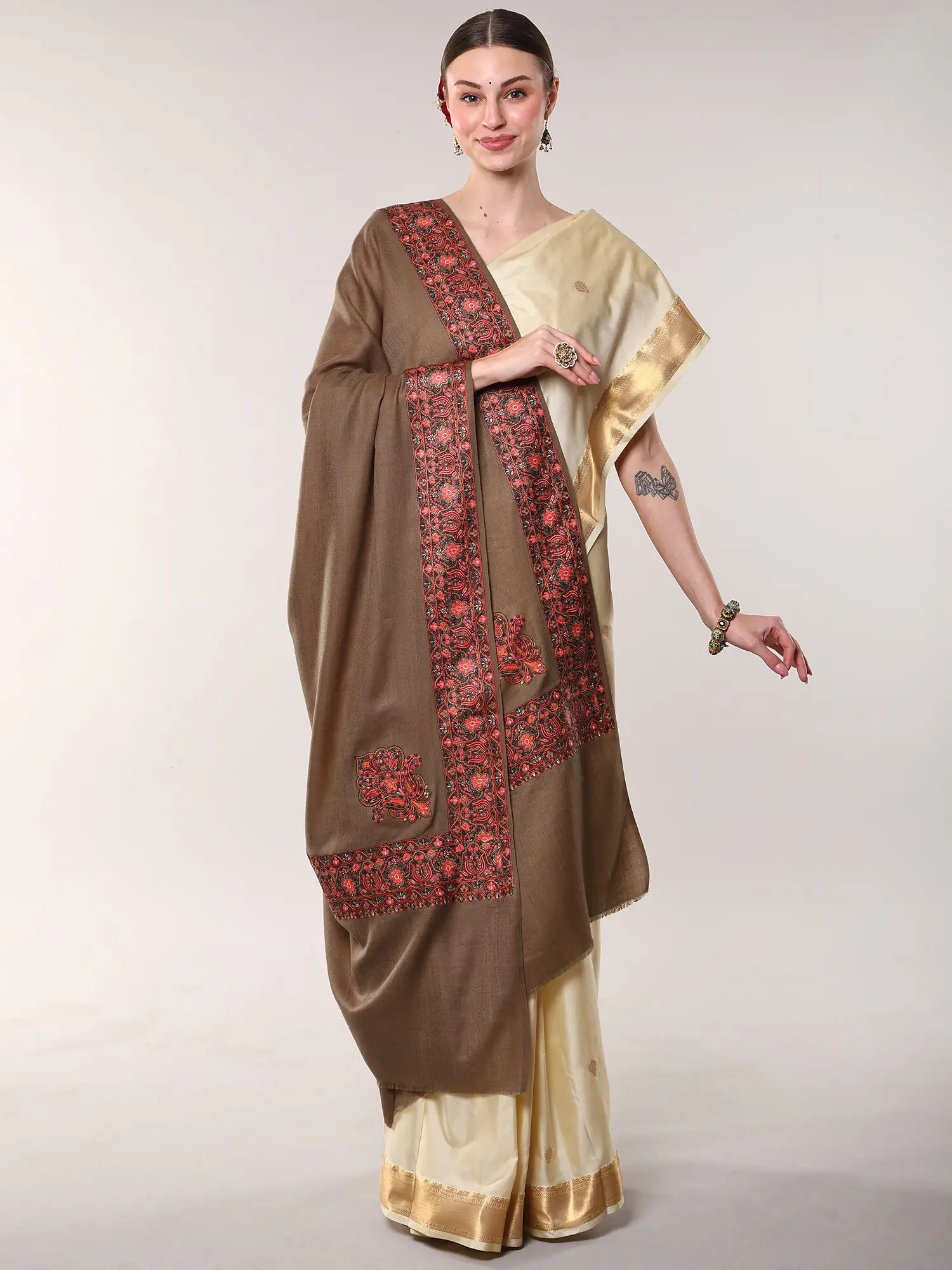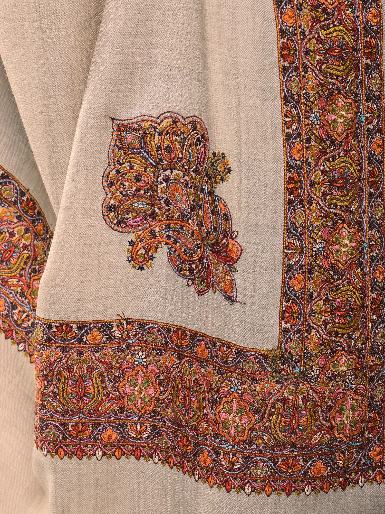 Aari Embroidered Wool Shawl from Amritsar with Paisleys Border