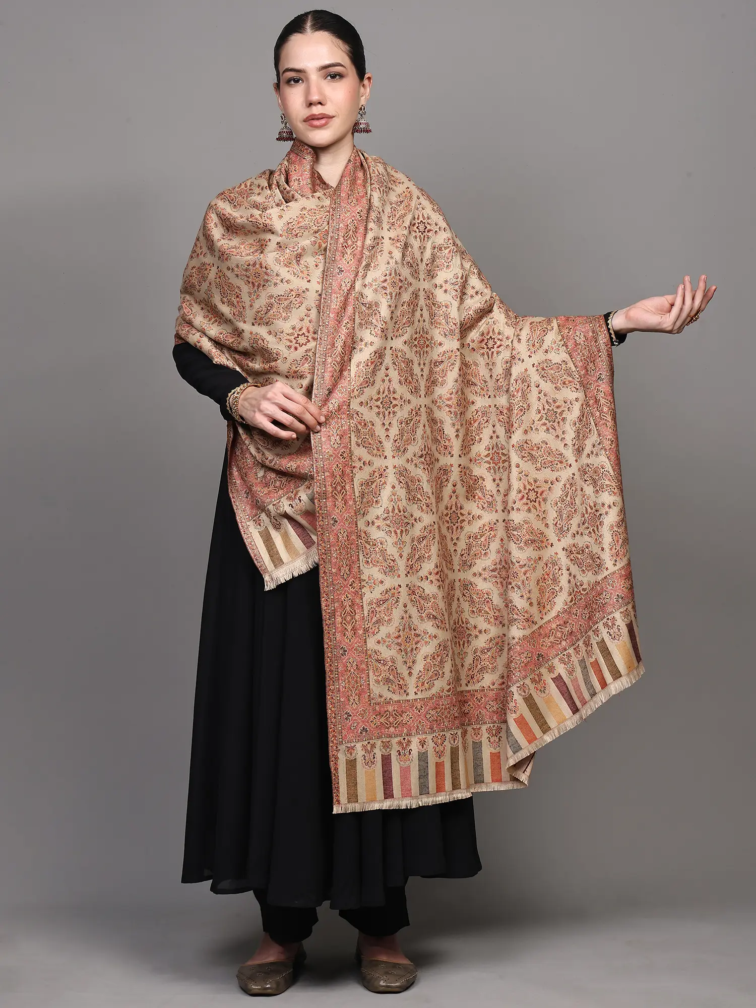 Amritsari Chain Stitch Satin Aari Embroidered Mughal Motif Pure Wool Shawl