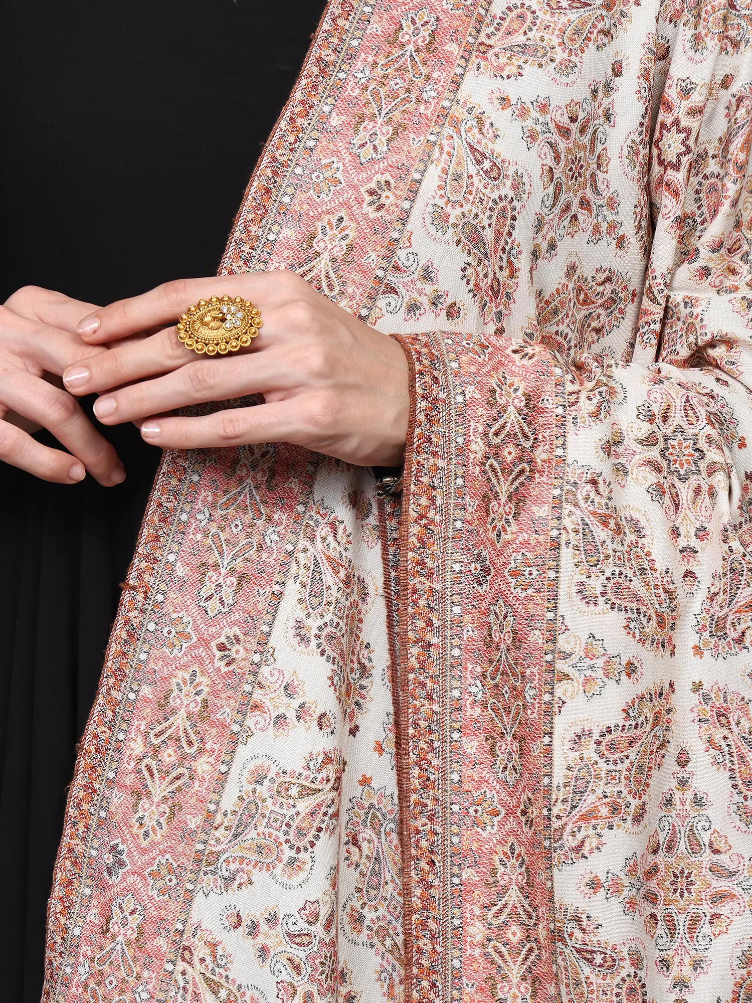 Pure Wool Shawl from Amritsar with Aari Embroidered Paisleys on Border