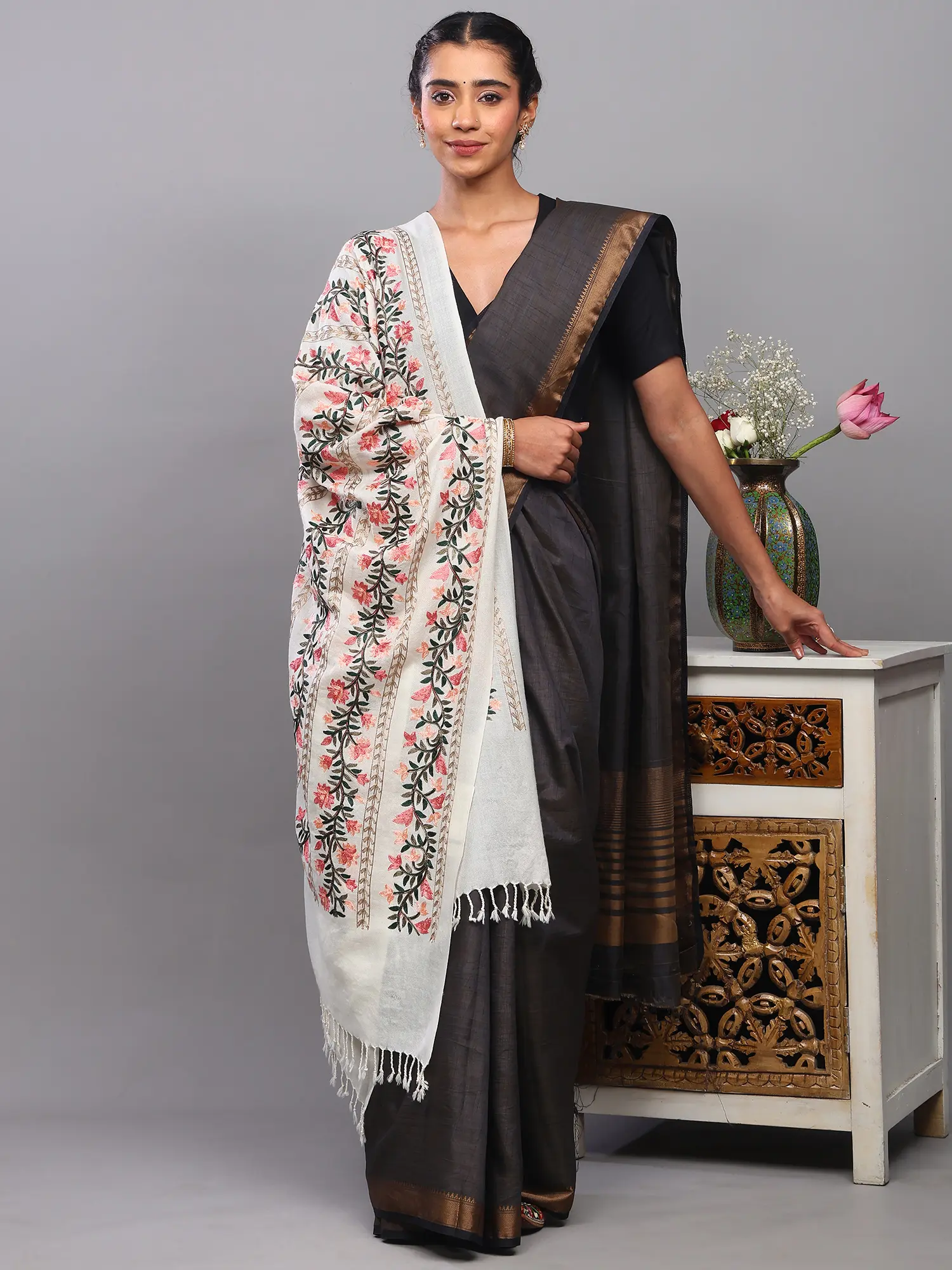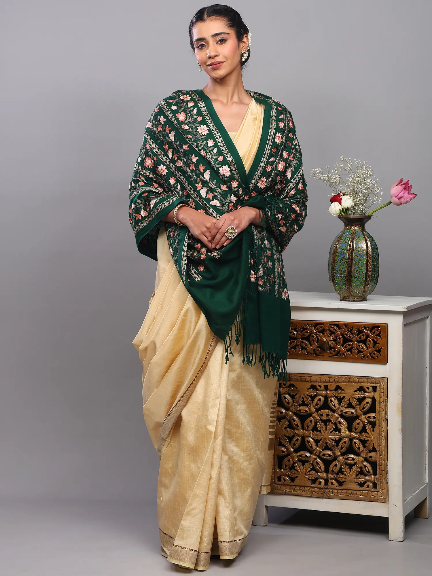 Aari Embroidered Wool Shawl from Amritsar with Paisleys Border