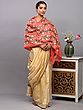 Amber-Green Shimmer Pure Wool Shawl with All-Over Weave in Zari Thread