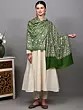 Indulge in the exquisite craftsmanship of this stunning wool stole, a testament to traditional artistry. Crafted from sumptuously soft wool, it offers both warmth and unparalleled comfort, making it a perfect companion for cooler evenings or adding a touch of refined elegance to any ensemble. The rich, deep green hue serves as a sophisticated backdrop for the intricate white embroidery that adorns its surface, creating a captivating visual appeal.