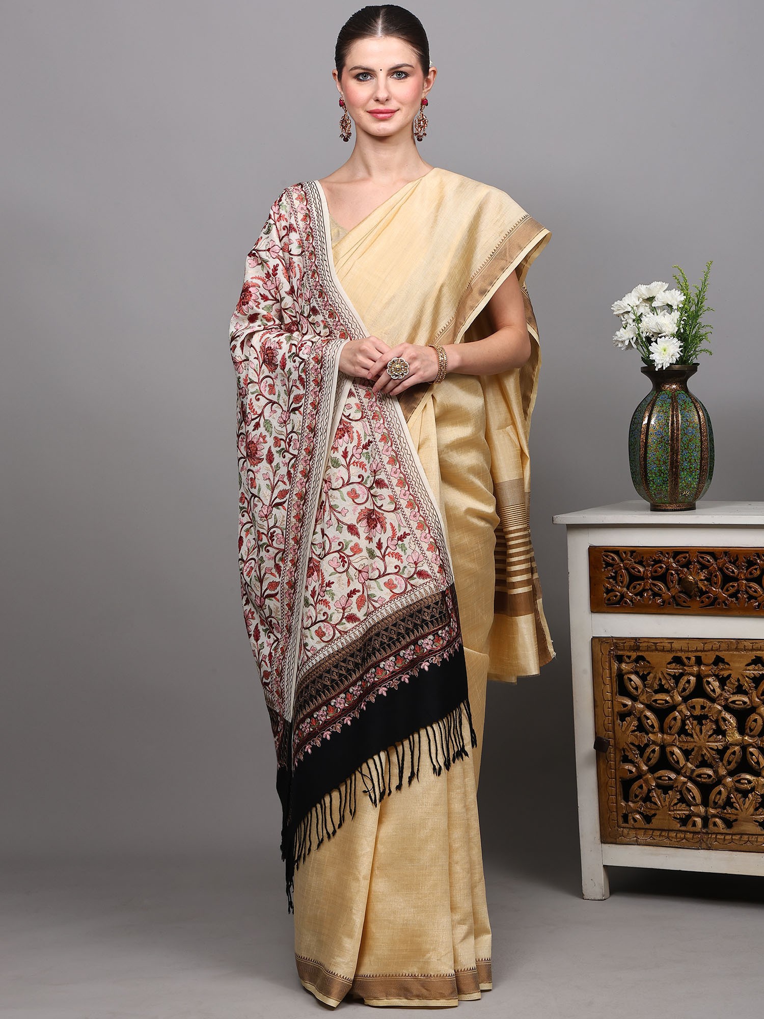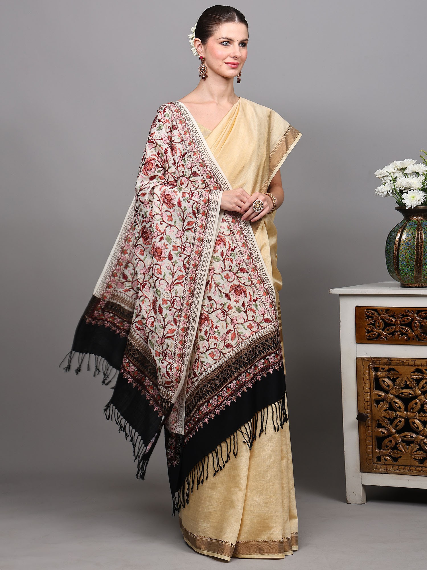 Wool Stole with Chain Stitch Thread Embroidered Floral Jaal from Amritsar