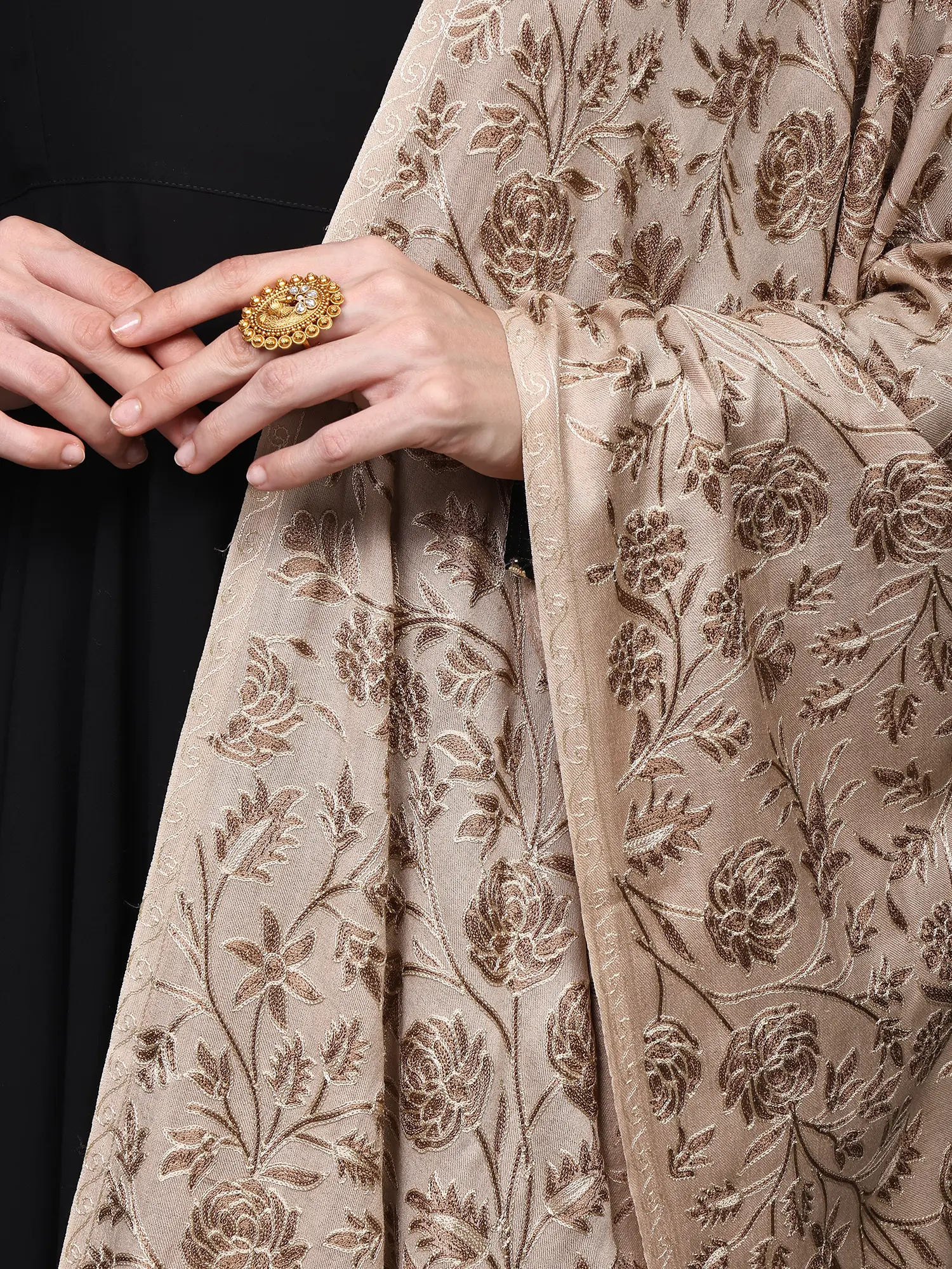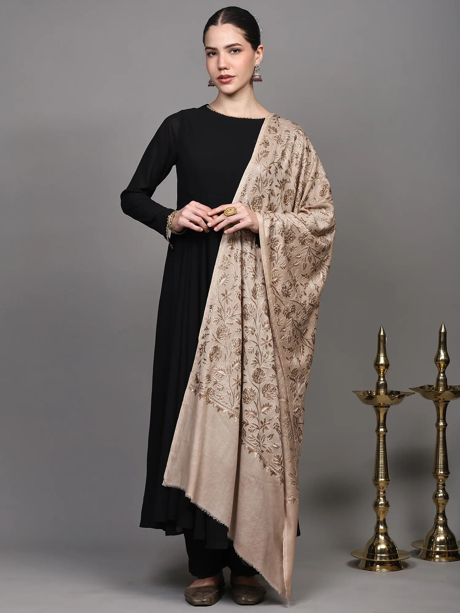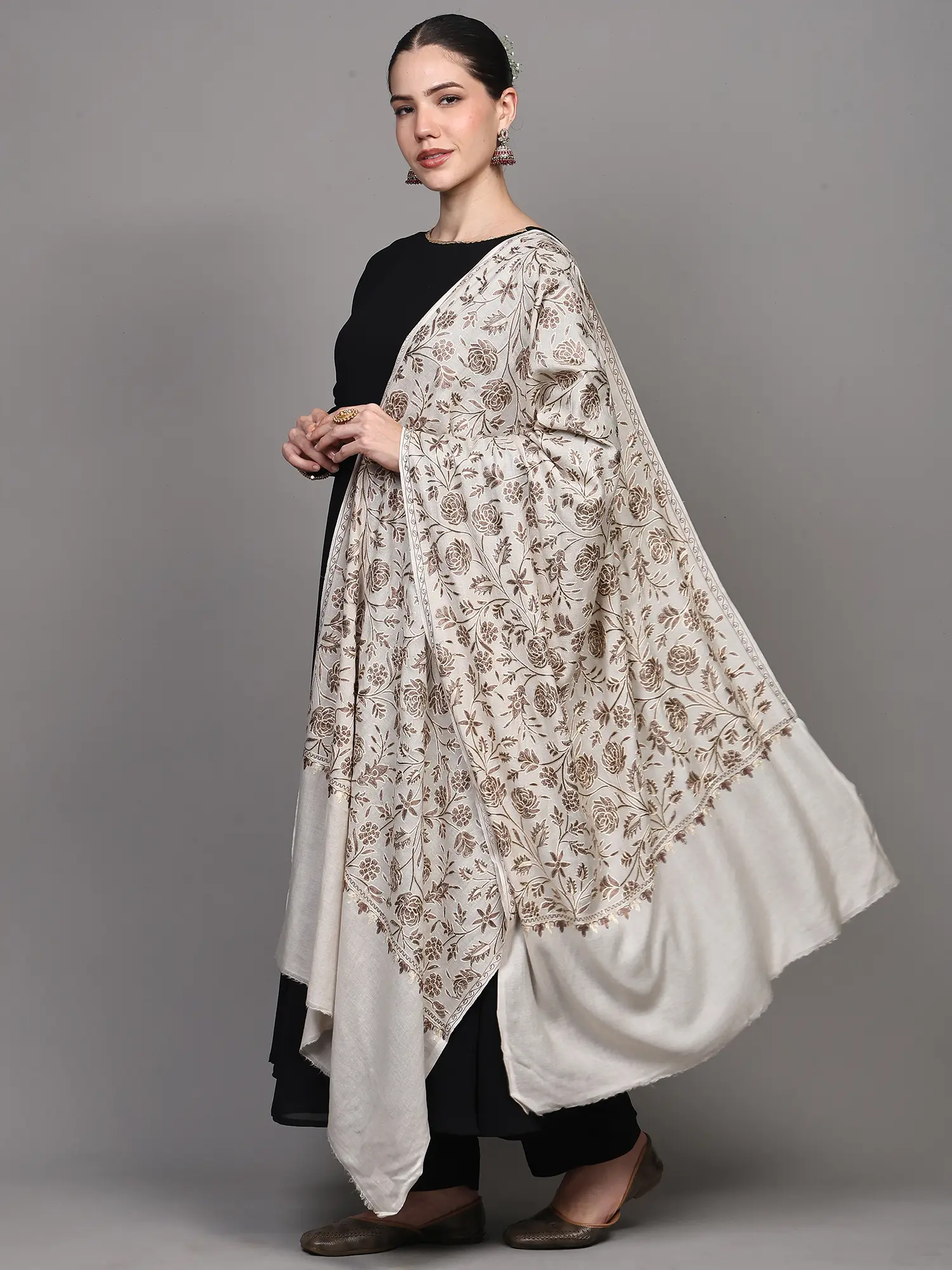 Wool Stole with Chain Stitch Aari Embroidered Floral Jaal from Amritsar