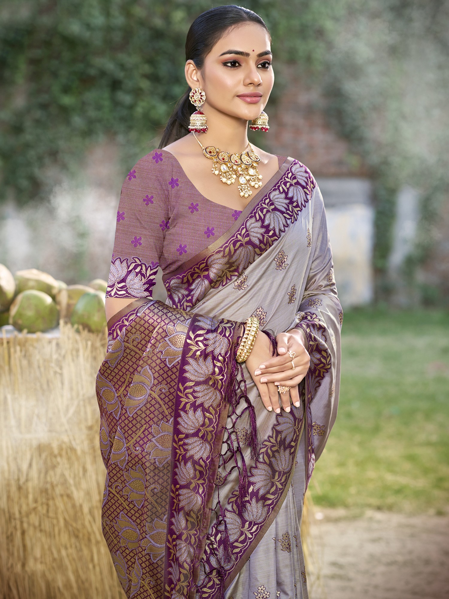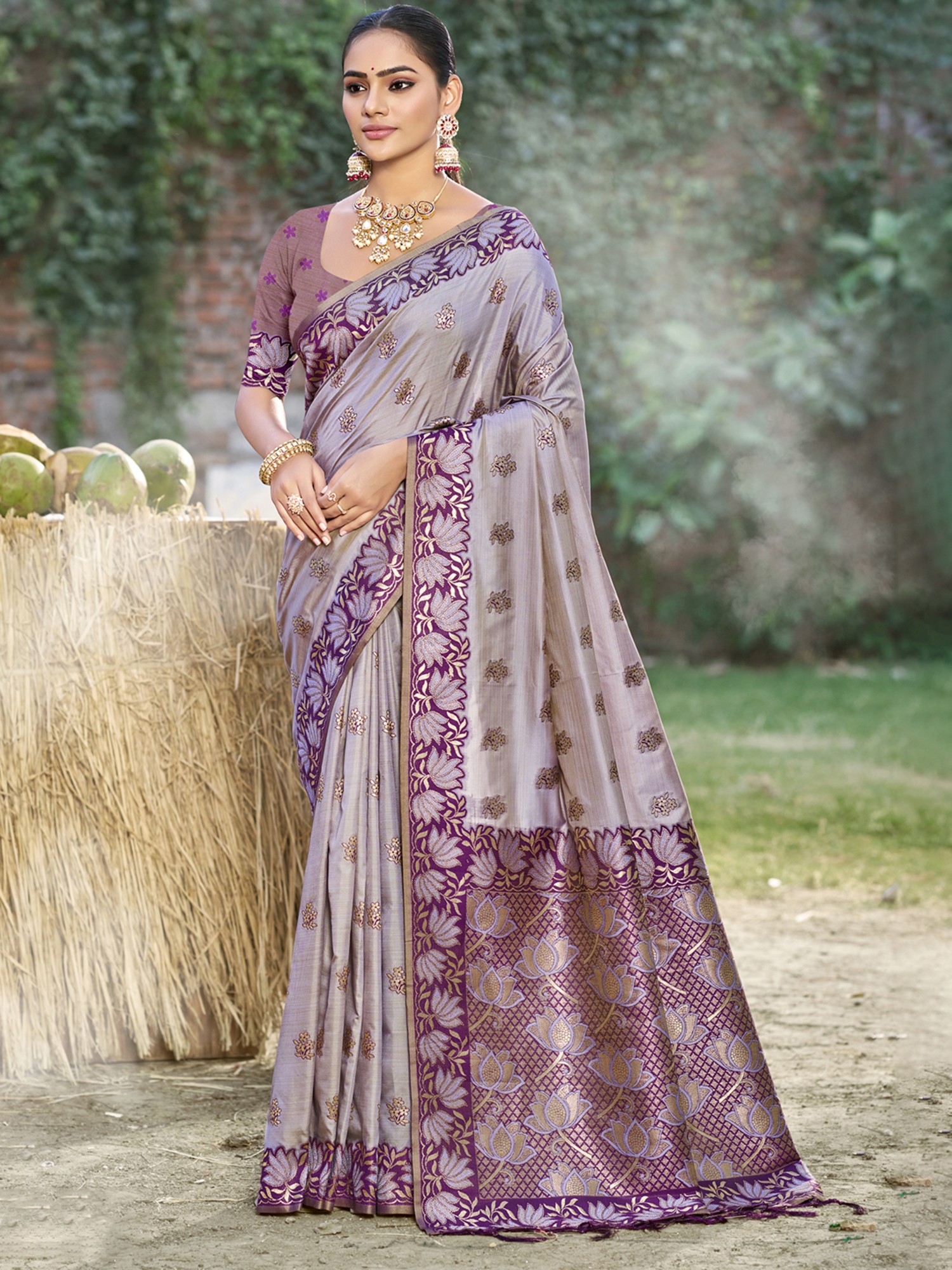 Uppada Sari from Bangalore with Zari-Woven Leaves