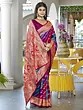 Teal Blue Synthetic Net Saree with Floral Motifs and Border