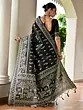 Designed for festive wear, this saree is the epitome of ethnic charm and refined style. Whether you are attending a wedding, a traditional ceremony, or a grand cultural event, this saree promises to make a memorable statement. Pair it with traditional gold jewelry and complementary accessories to complete a look that is both classic and contemporary. The versatility of the black base allows for a wide range of jewelry choices, enabling you to personalize your ensemble and express your unique sense of style. Embrace the spirit of celebration with this magnificent woven wonder, and let its timeless beauty illuminate your special moments.