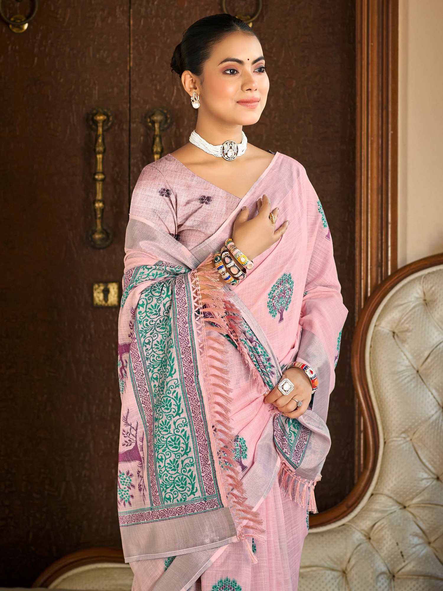 Sequins Weaving Silk Saree with Digital Print Blouse