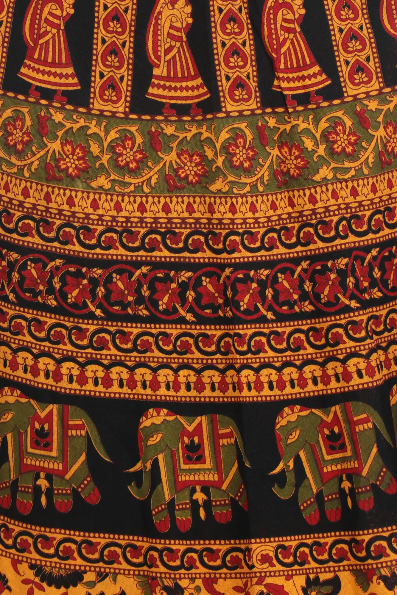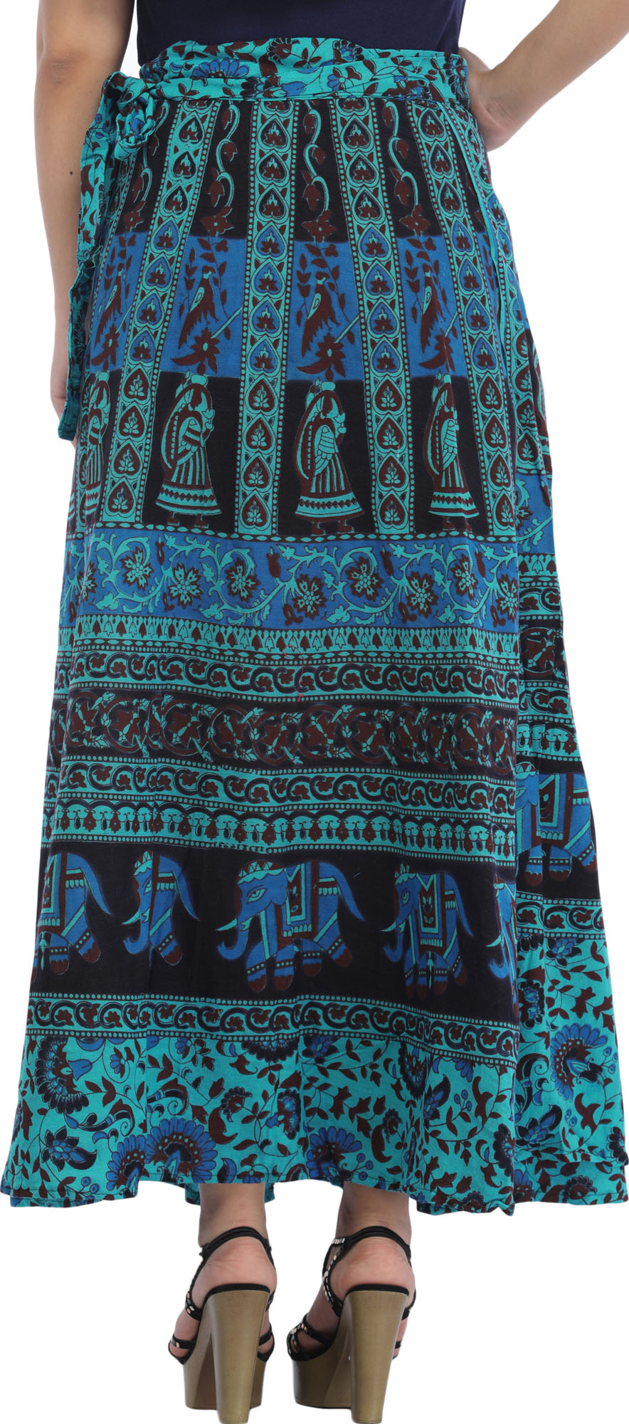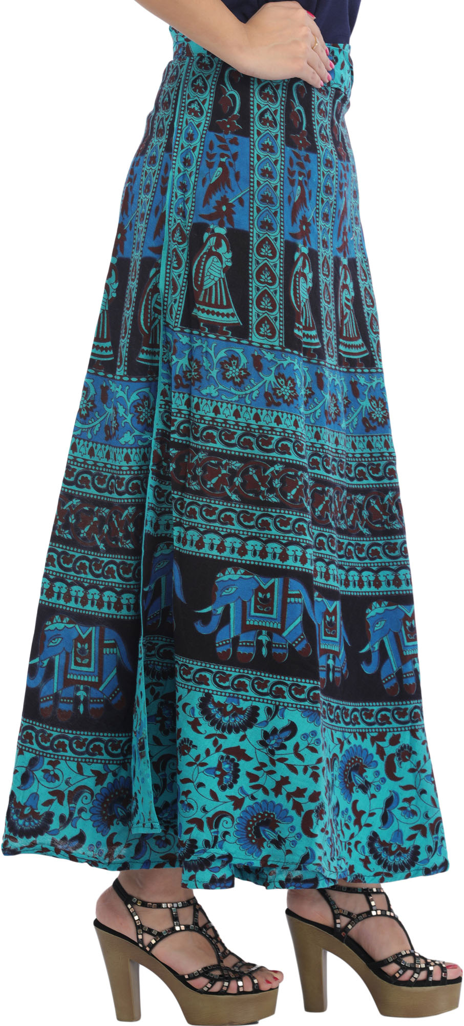 Each motif whispers tales of heritage and blessings, intertwining tradition with contemporary grace. Made from pure cotton and adorned with auspicious motifs, this long skirt drapes you in comfort while exuding eternal charm. Symbolizing prosperity, love, and harmony, this skirt is a canvas of cultural richness. Enrich your wardrobe with this art-piece, a conduit to auspicious vibes.
