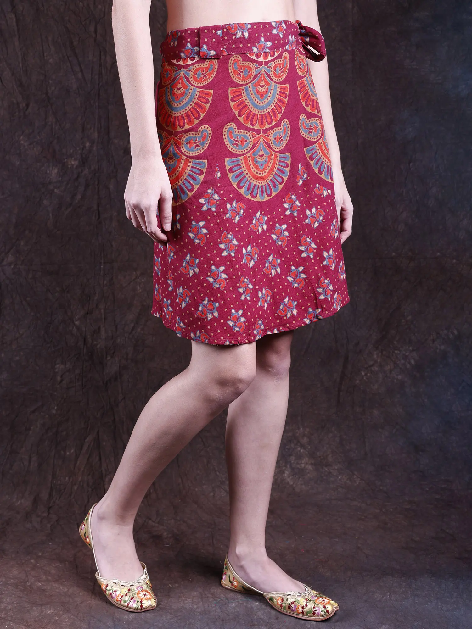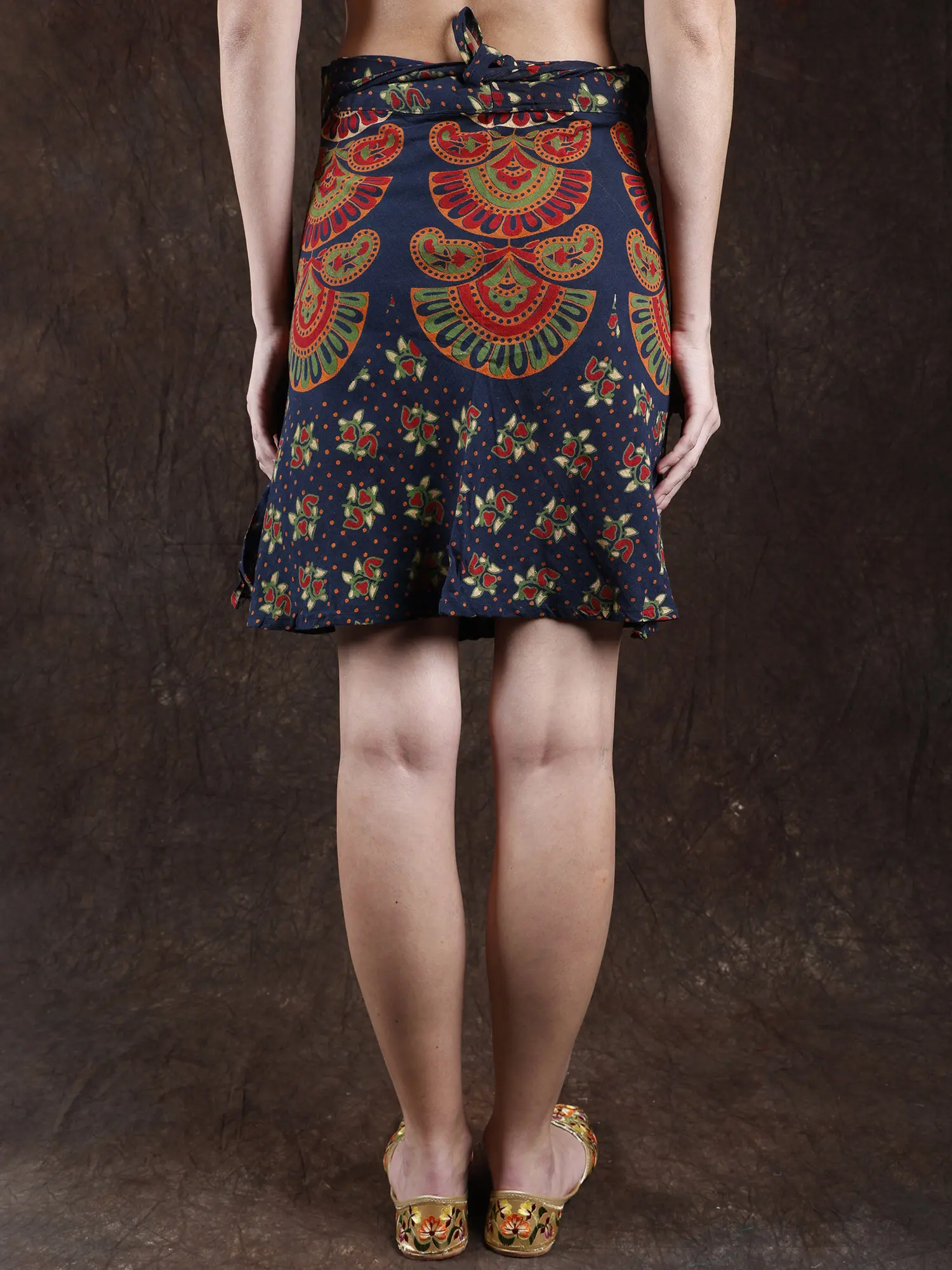 This “Wrap-Around Sanganeri Short-Skirt” is a mesmerizing tribute to the rich heritage of “Sanganeri hand block printing,” crowned with a prestigious “GI tag” since 2010. Adorned with printed motifs, each swirl and curve whispers tales of tradition and artistry. This skirt is a canvas of culture, and a celebration of artistry.