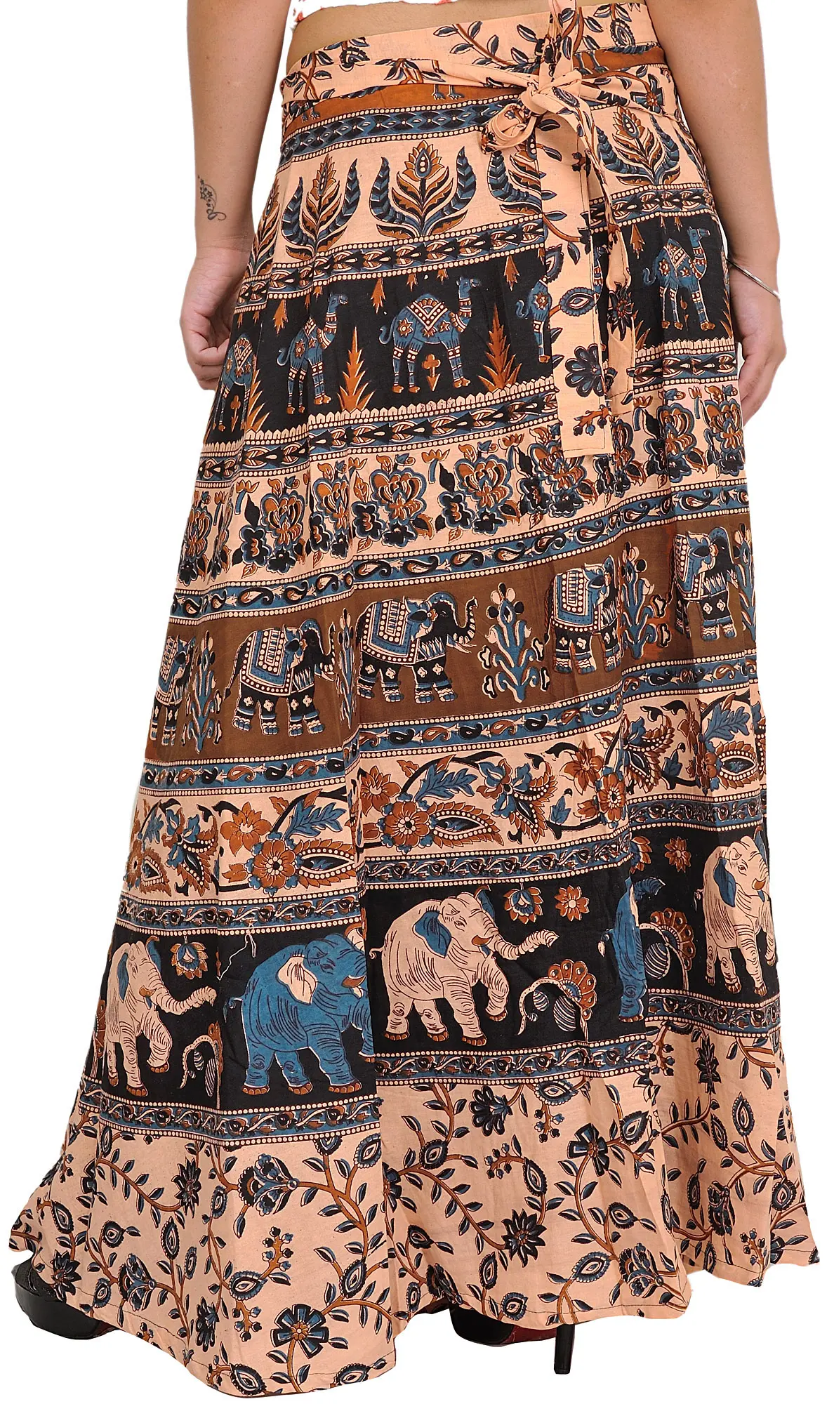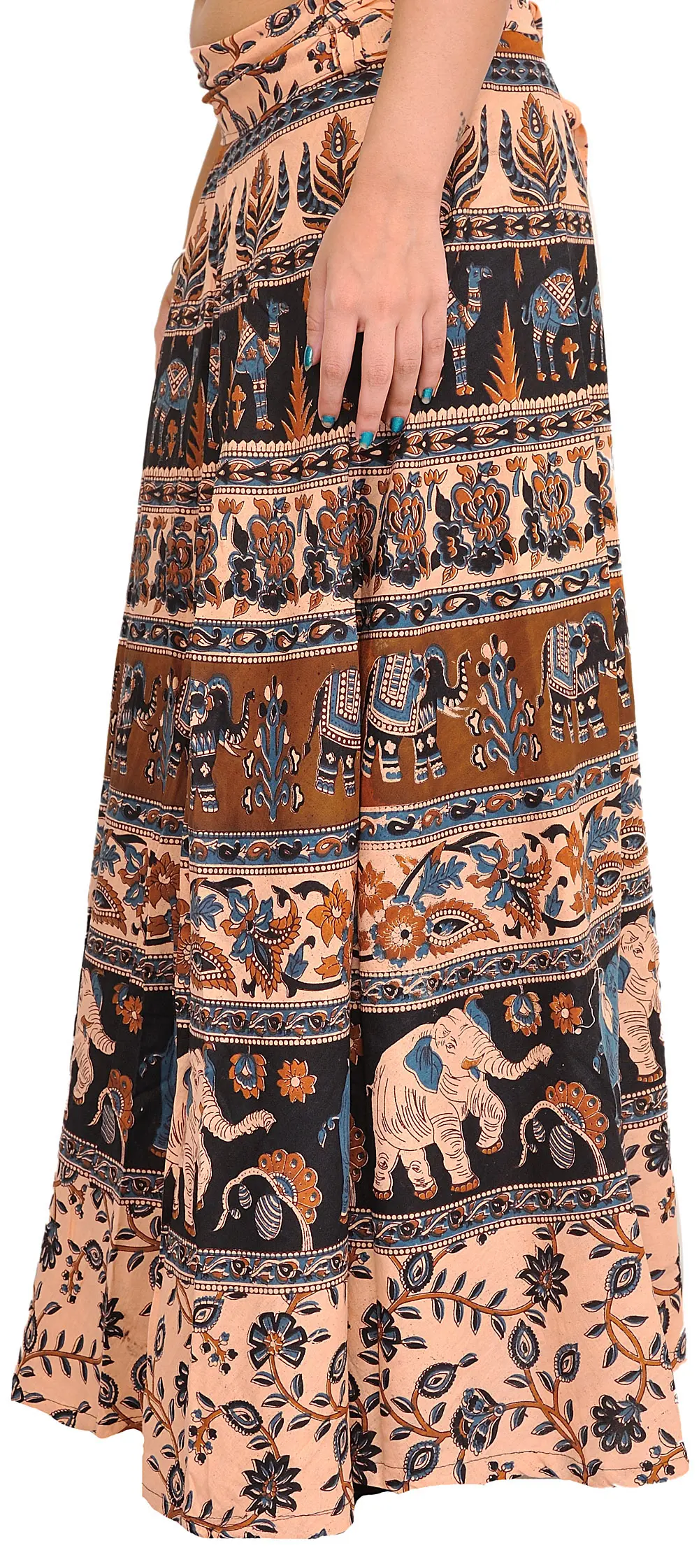 Wrap-Around Long Skirt from Pilkhuwa with Printed Elephants