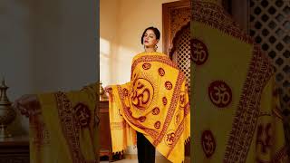 This sacred prayer shawl will take you to a realm of serenity and spiritual awakening. Crafted with care and adorned with a large printed “Om,” this shawl serves as a beacon of divinity and inner peace. Yellow, symbolizing optimism and intellect, infuses every thread with the energy of enlightenment and positivity.
