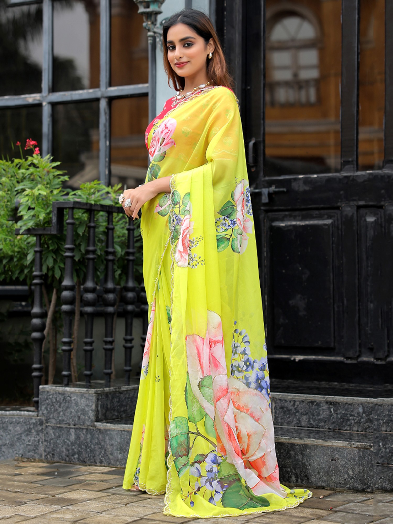 Brocaded Banarasi Silk Floral Butta Saree with Chakra Pattern Wide Border