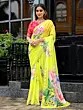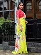 Soft Tussar Silk Zari Woven Contrsat Border And All Over Floral Printed Saree And Stripped Border Pallu