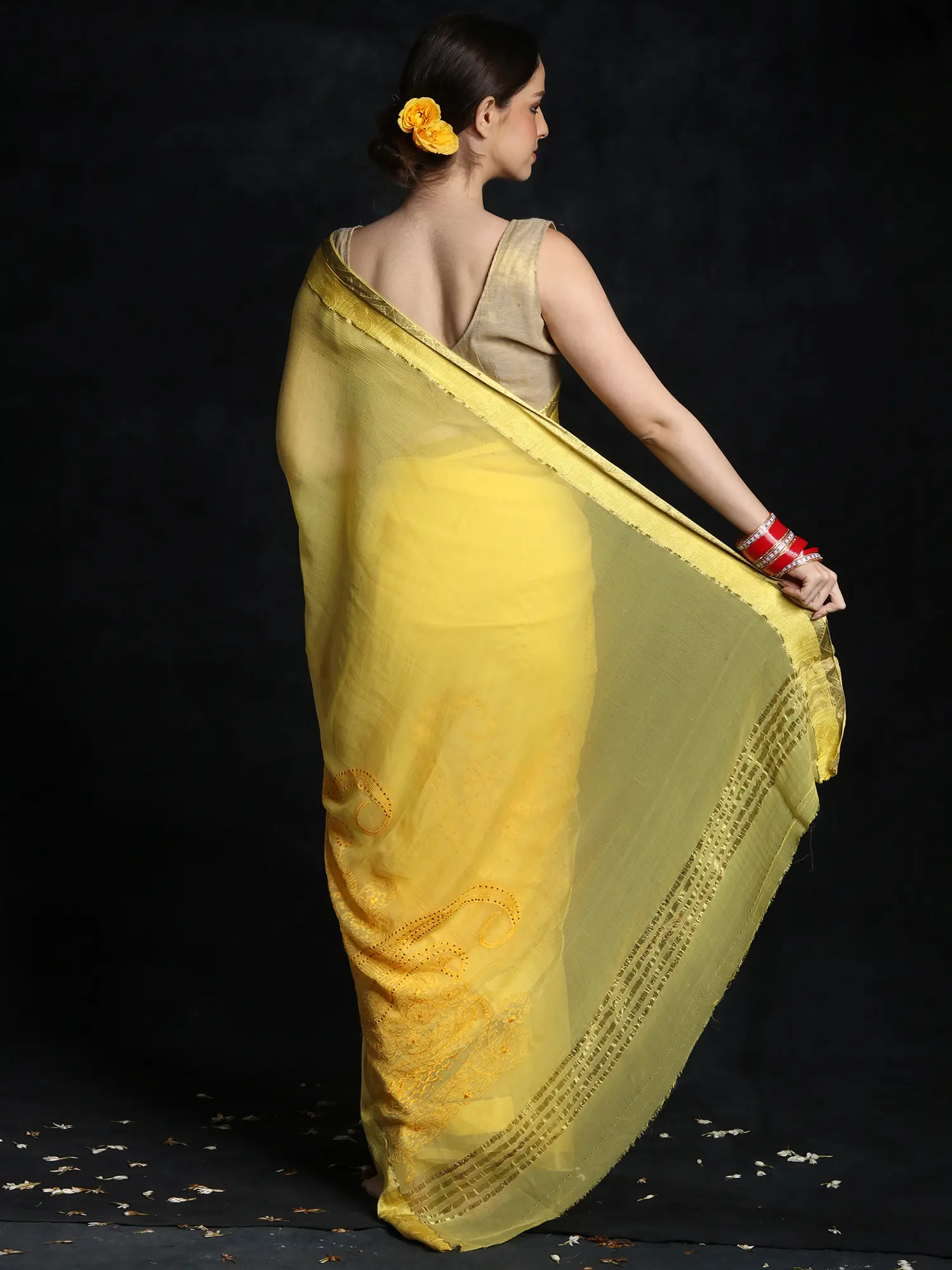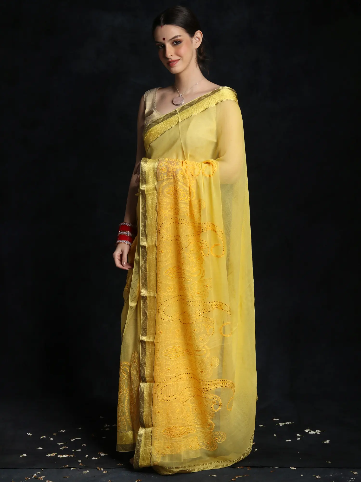A Symphony of Sunshine: The Yellowtail Chiffon Paisley Saree