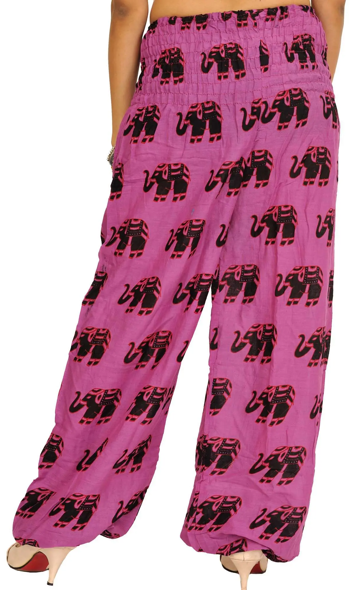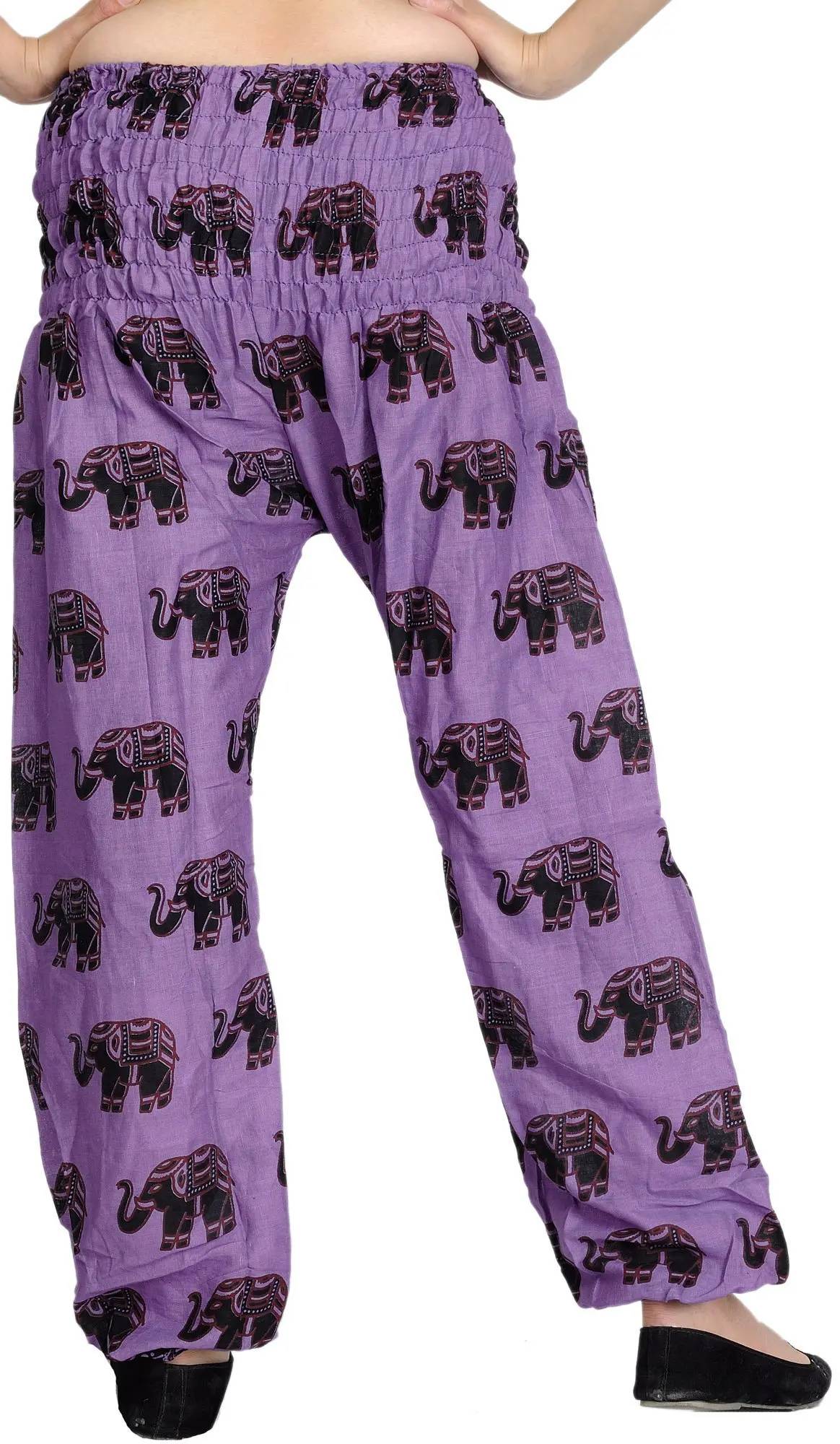 According to an ancient treatise on Yoga, one should be at ease and wear loose, breathable clothing while practicing Yoga, to allow a free flow of blood and give the body ample space during the various asanas. Experience comfort and ease during your Yoga sessions in these yoga trousers, tailored with breathability and a touch of ethnic allure. The cotton trousers have a wide elastic to allow you comfort and come with pockets. Bold and contrasting elephant prints all over the trousers give them a beautiful traditional look, that will make your Yoga practices an enjoyable part of your day.