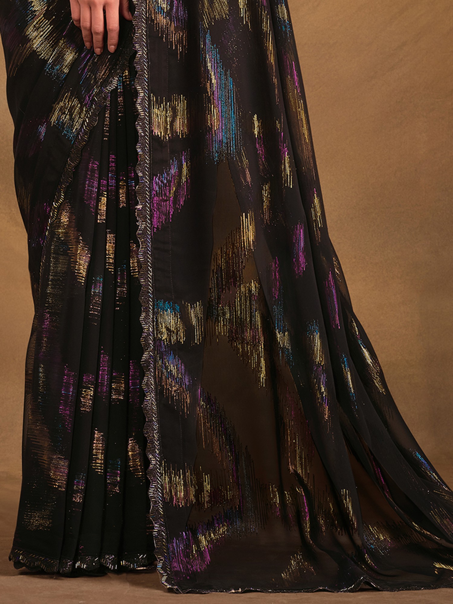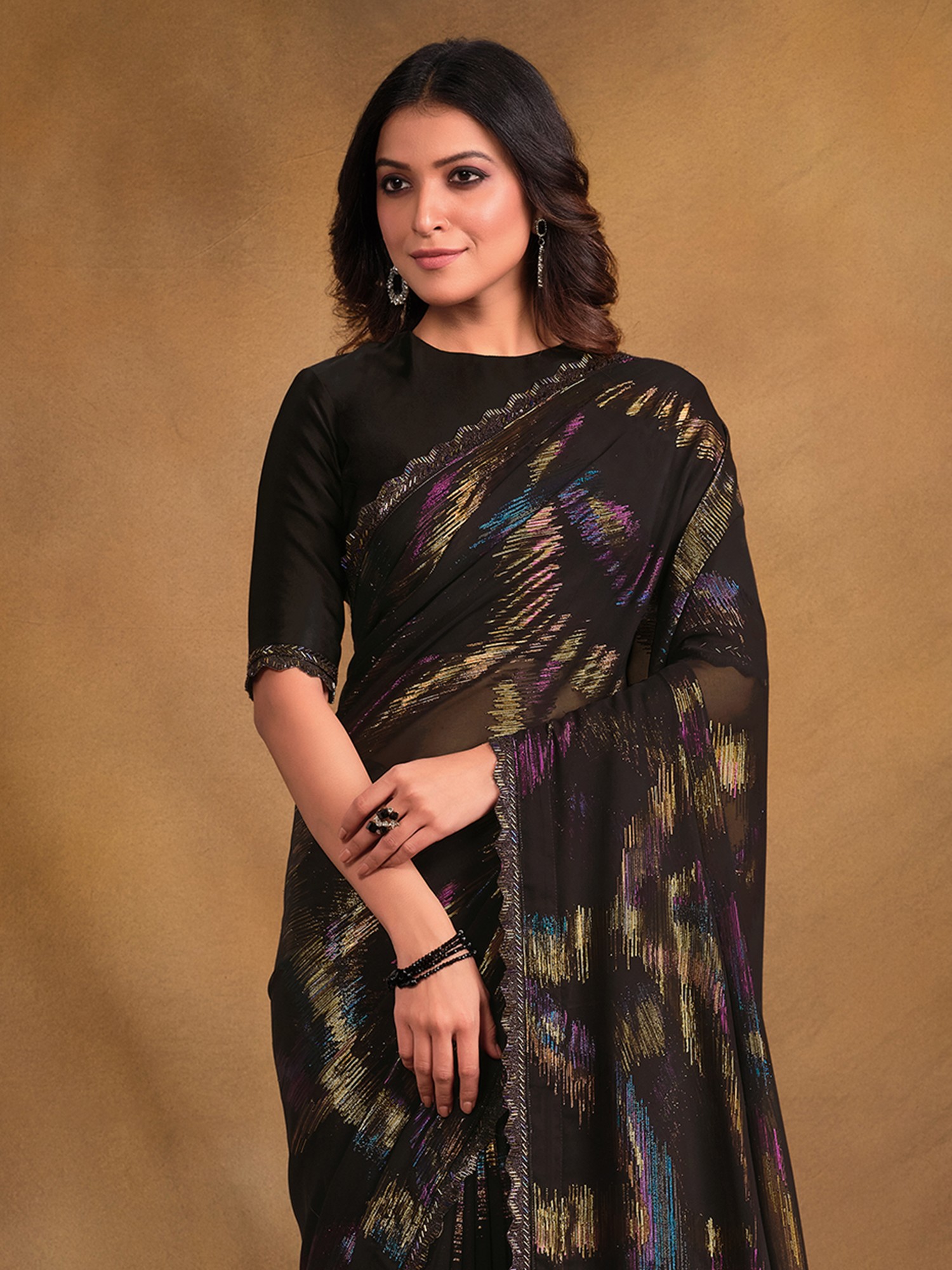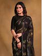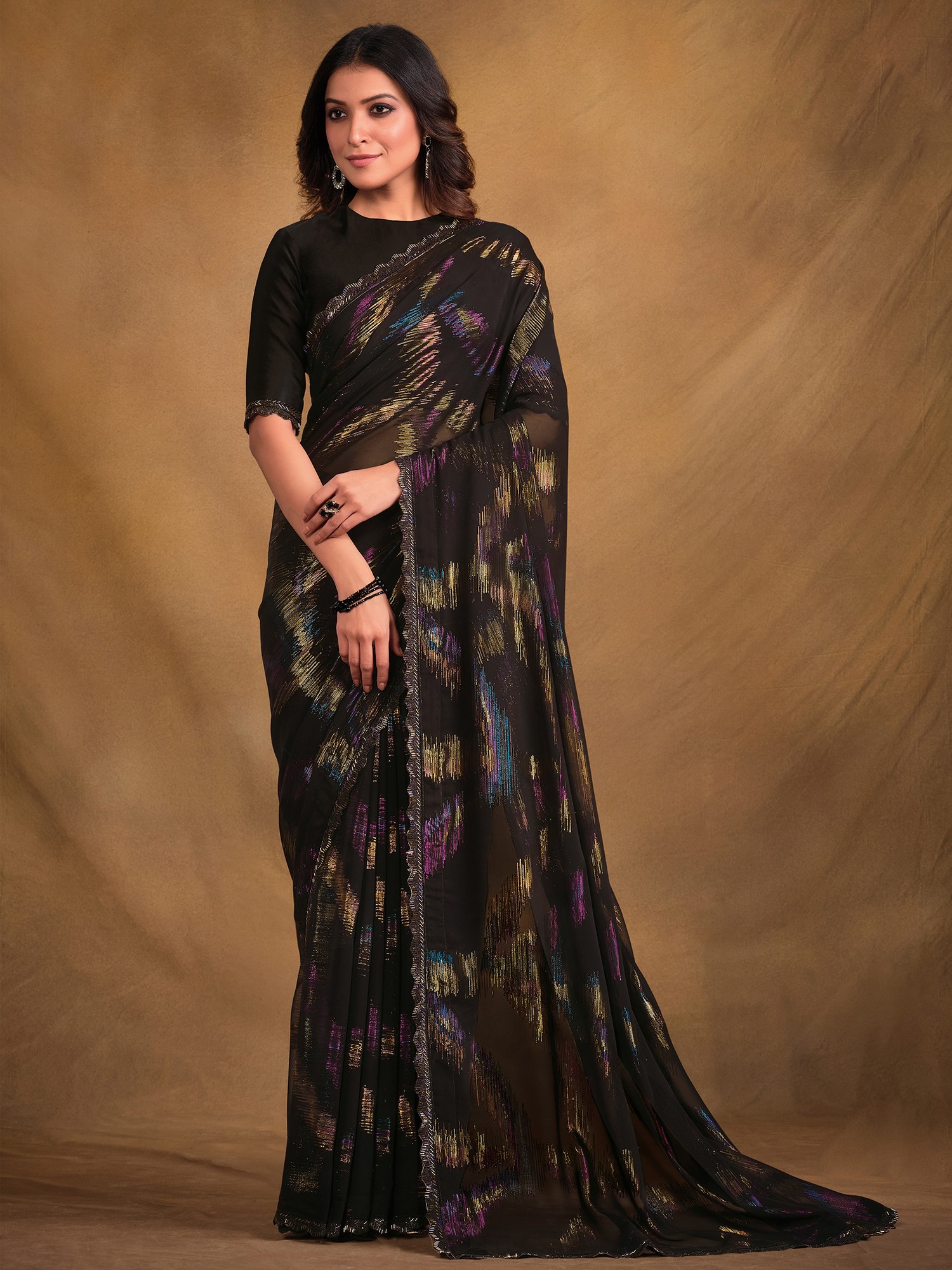 Crepe Satin Silk Zardosi And Handwork Floral Border Fancy Party Wear Saree