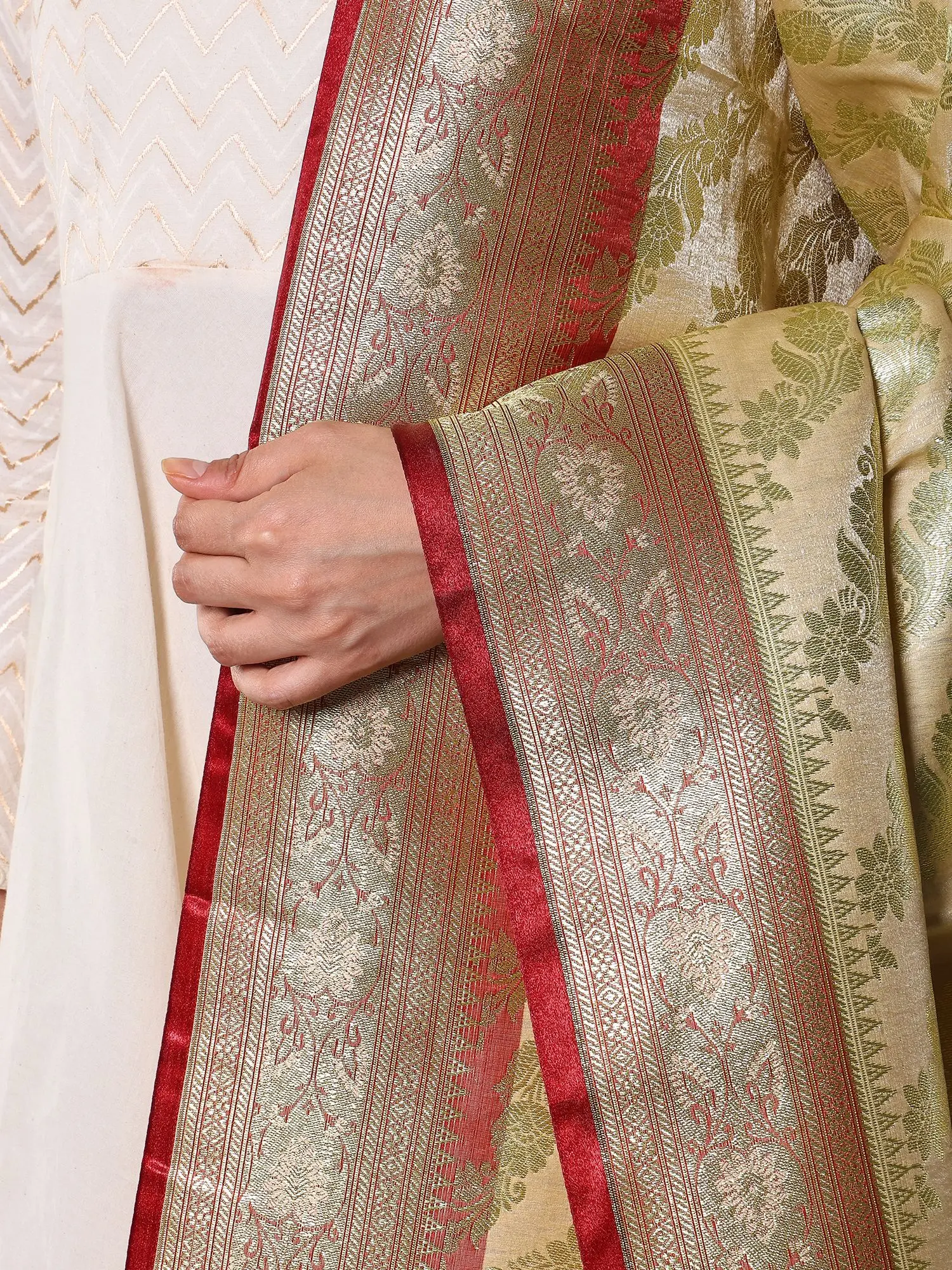 Banarasi Brocaded Zari Thread Dupatta with Floral Weave