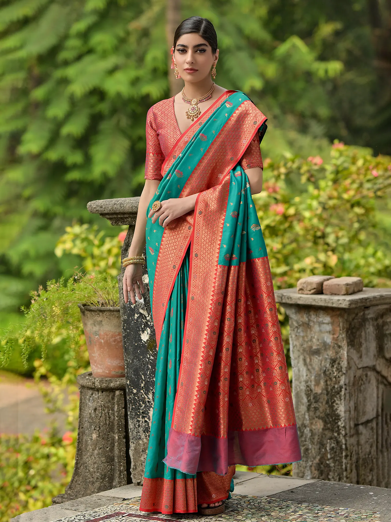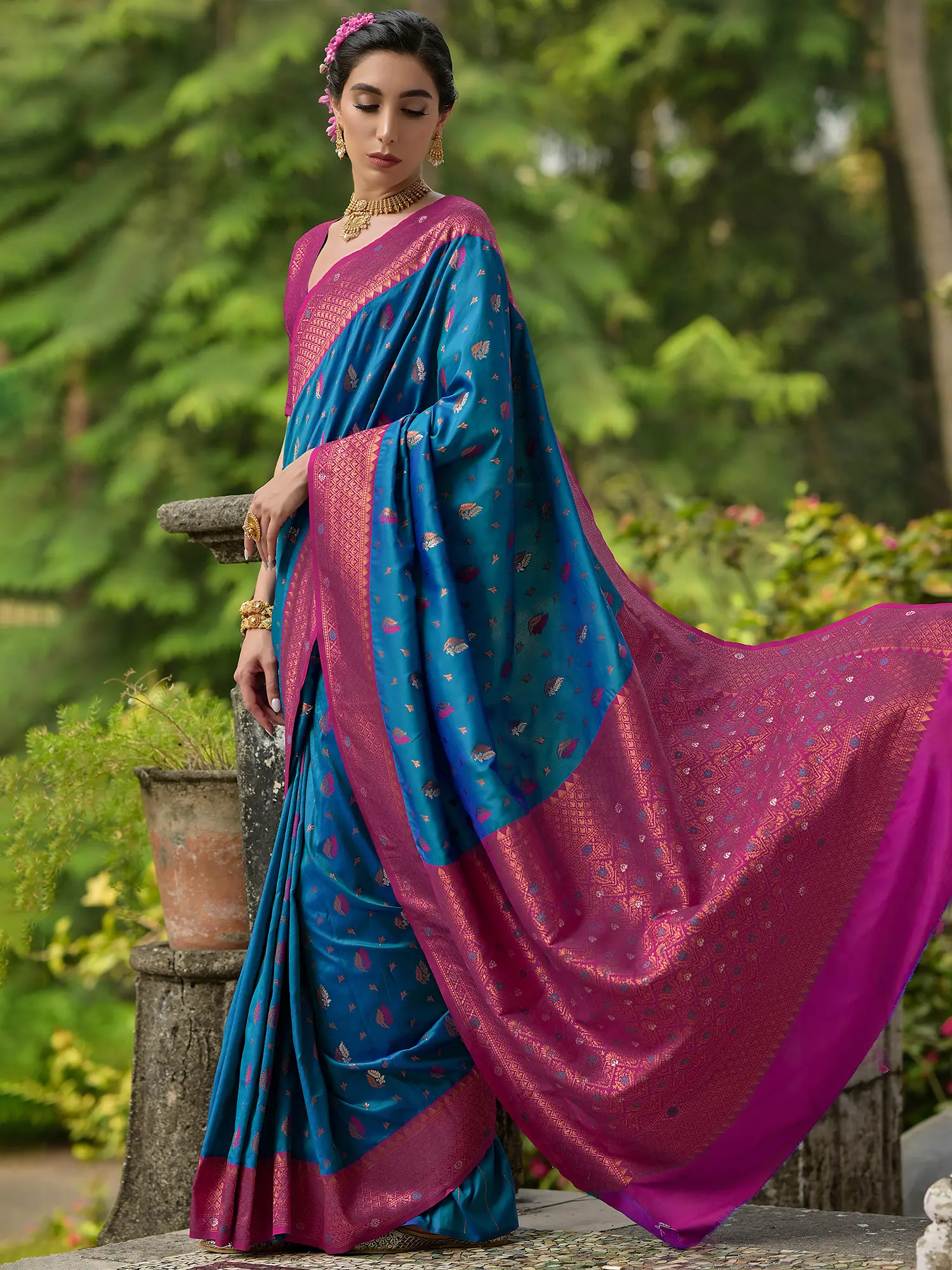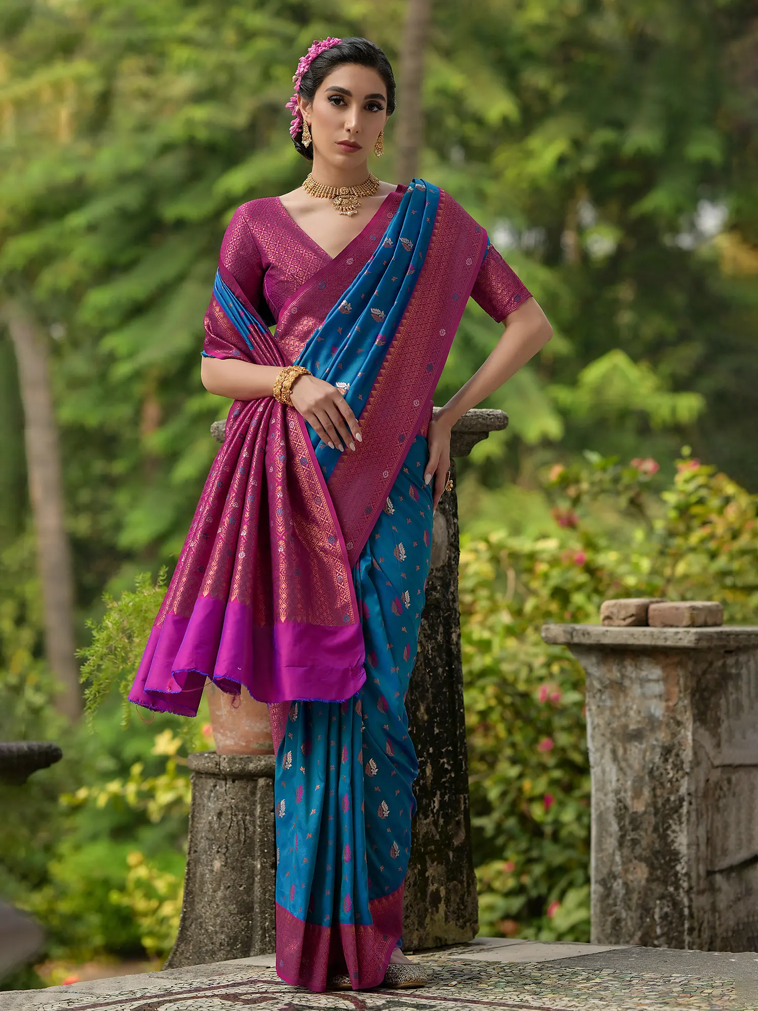 Uppada Sari from Bangalore with Zari-Woven Leaves