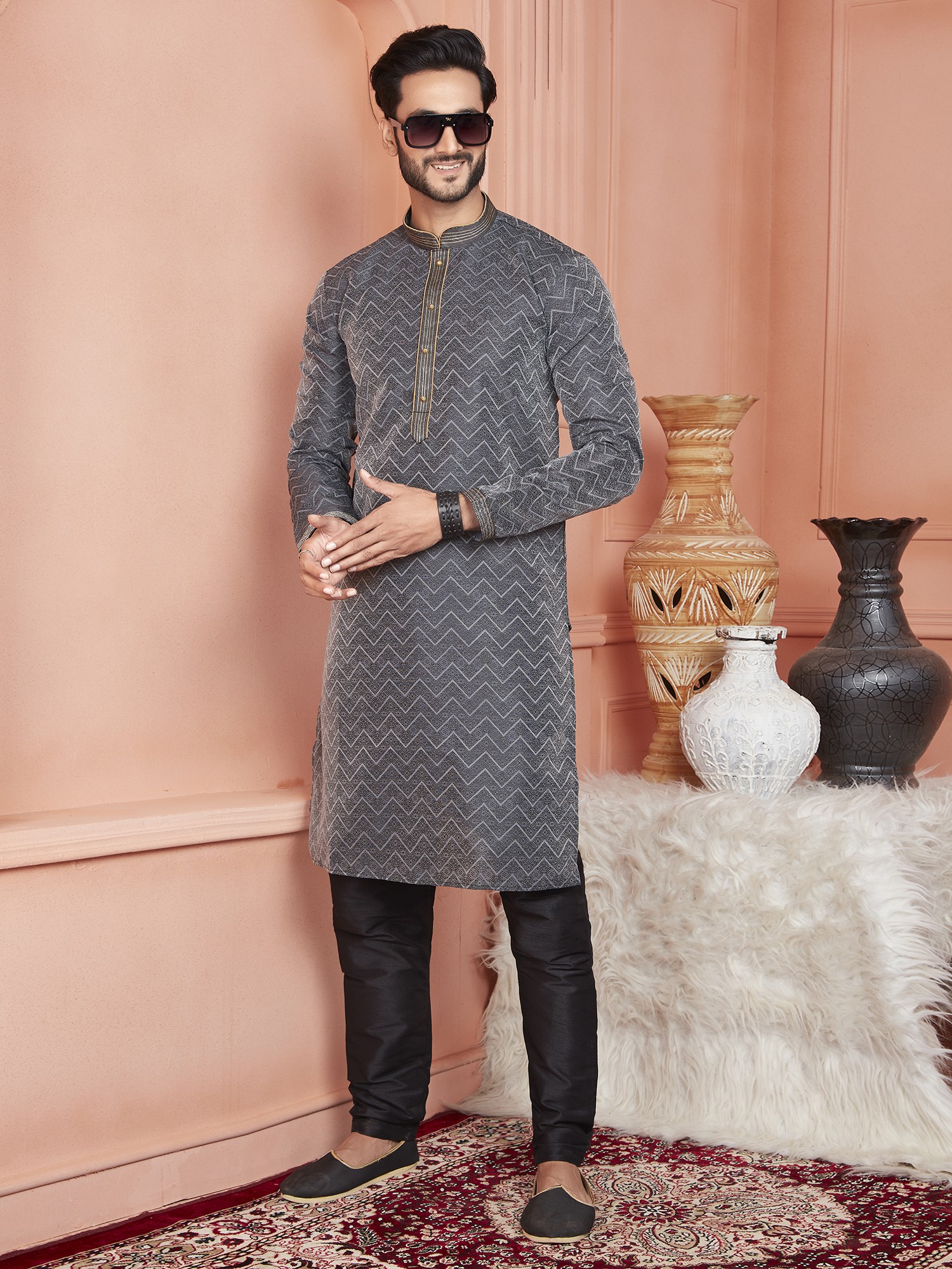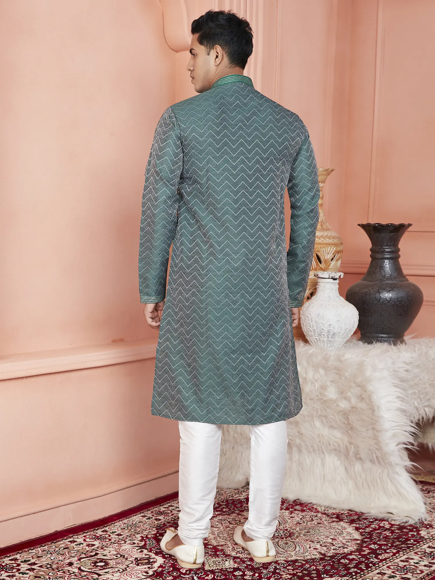 Cotton Blend Pine Tree Motif Digital Print Kurta with Pure Cotton White Pajama