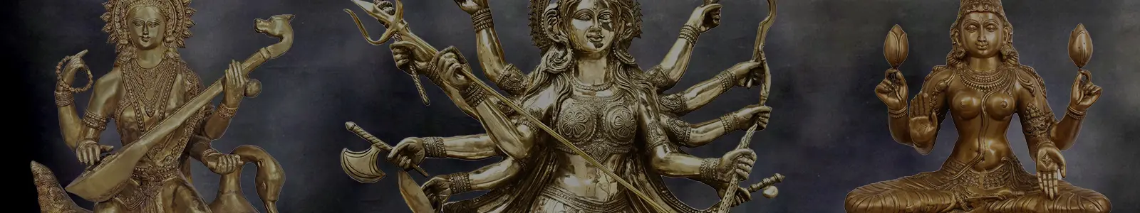 Durga is portrayed as a Goddess of Salvation and Happiness. She is also revered as the slayer of evil and the defender of justice. She is the personified form of all the Gods and Goddesses' Divine Shakti. She is seen in her statues wielding weapons with her numerous weapons and riding a lion.