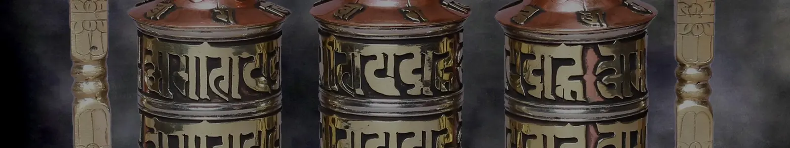 A prayer wheel is a sacred or spiritual tool in the Tibetan Buddhist tradition that the followers use to carry out their devotional practices. It is shaped like a cylindrical wheel mounted on a handle or axis. Inside the wheel, inscriptions of mantras or sacred syllables are found on a paper tightly bound to it. The most common mantra inscribed is “Om Mani Padme Hum”.