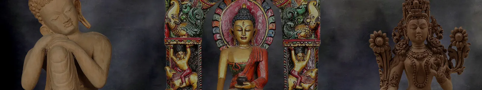 In the artisan's hands, wood evolved to give shape to relatively smaller statues of Bodhisattvas and mythological creatures. Gathered here in this exclusive Nepalese wooden sculptures section is a wide range of implements that suit the medium in question, as well as exquisite deity sculptures handpicked for their lifelike perfection and a quality of aesthetics only possible for wood.