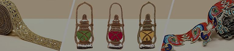 The soul of a piece of textile does not lie in the fabric or the dye or the style. Irrespective of whether it is something wearable or an item of home decor, what adds personality to the merchandise are the embellishments. Ethnic fashion is especially characterised by embellishments that comprise folk motifs and endemic trims. This section consists of a large collection of borders, patches, kinaris, trims, and laces, each handpicked from the recesses of the subcontinent for its beauty and workmanship.