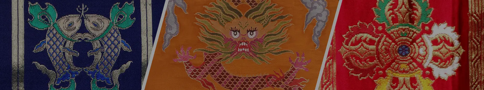 Handcrafted from pure silk fabrics from Banaras and woven with metallic threads, our collection of Buddhist patches exudes luxury and cultural heritage. The golden or silver metallic threadwork lends the fabric an opulent sheen that looks enchanting to the eyes. Indian Textiles is renowned for rich Zari embroidery that graces the silk fabric with traditional motifs such as paisleys, leaves, vines, and floral and geometrical patterns inspired by Mughal art.